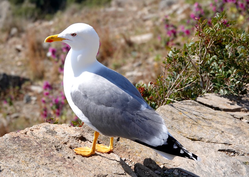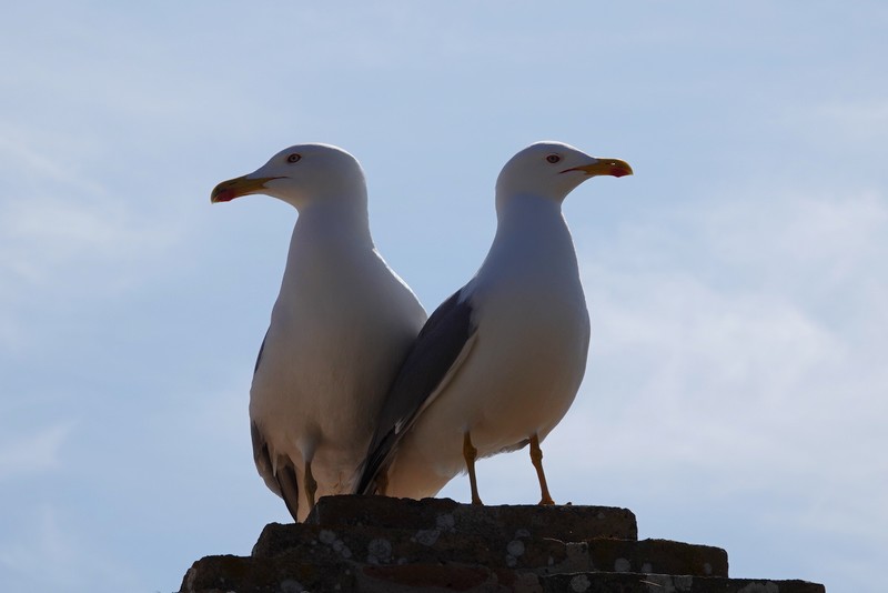 On ne s’attarde pas – on en a un peu marre des caprices d’Eole ! – et pour profiter du paysage en toute quiétude, on s’installe non loin du restaurant, sur un petit muret bien abrité. On pique-nique sous l’œil attentif de deux goélands, puis après un dernier petit tour du secteur, on reprend nos vélos.