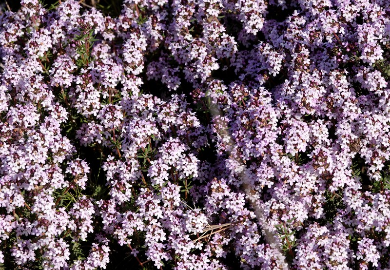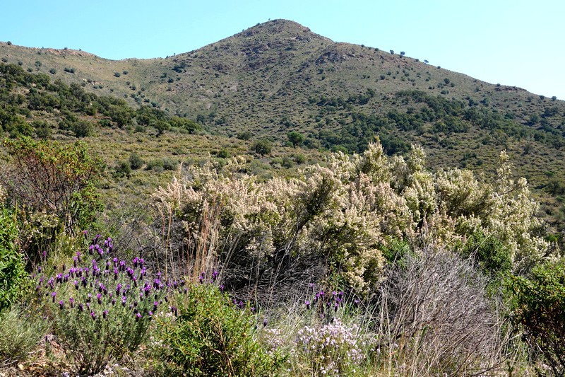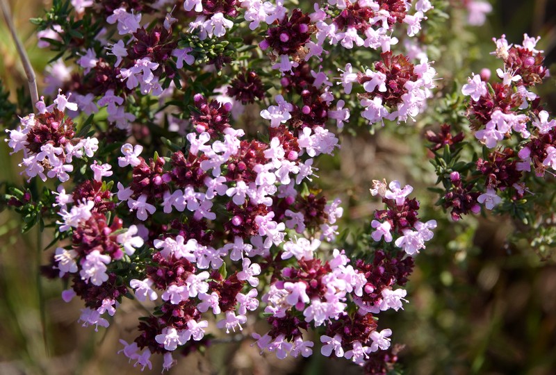 La végétation est toujours en fleurs, mais bizarrement, on n’observe guère de changement par rapport à ce que nous avions vu au mois de février, et l’explosion de couleurs imaginée n’est pas au rendez-vous. Néanmoins, Gérard capture de nouveau dans son objectif thym sauvage et lavande papillon !