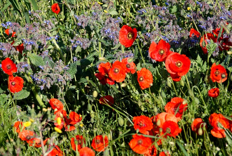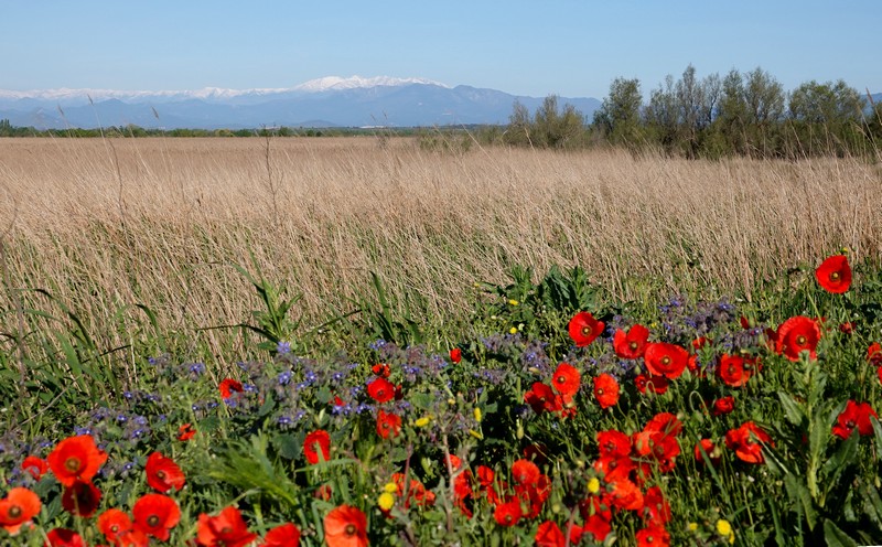 Mardi, on profite du retour du beau temps – soleil et vent à seulement 40km/h, autrement dit trois fois rien – on part à vélo en direction d’Els Estanys, les étangs de la partie nord des Aiguamolls. Les bords des chemins sont tout fleuris de jolis coquelicots, preuve que malgré la fraicheur ambiante, nous sommes bien au printemps !