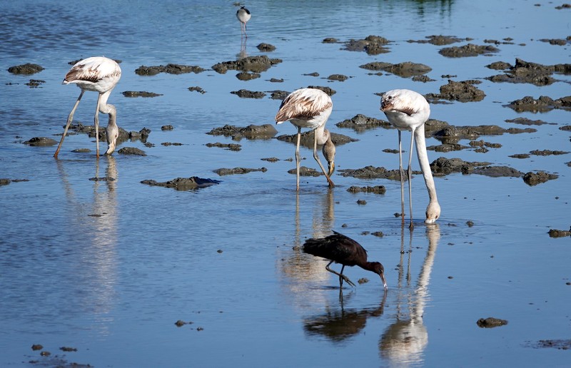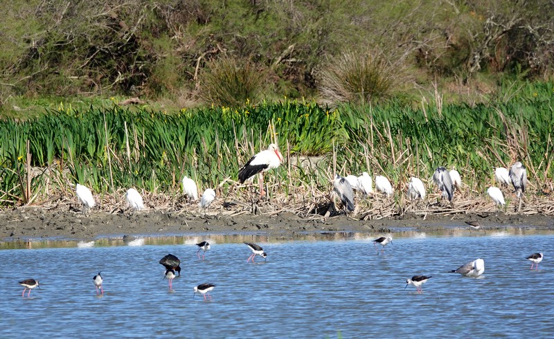 Après une bonne demi-heure de pédalage sur des pistes de terre un poil cahotantes, on arrive à l’Estany de Vilaüt. C’est la première fois que nous venons ici – eh oui, on découvre encore de nouveaux coins, même après quatre mois de séjour dans le secteur ! – et nous sommes agréablement surpris par la belle diversité aviaire qui habite l’étang. Pour notre plus grand plaisir, ibis falcinelles, flamants roses tout blancs, cigognes, échasses blanches et aigrettes sont au rendez-vous !