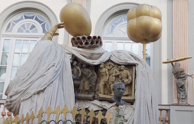 Et hop, c’est reparti : deux jours après notre superbe visite de la maison de Dali à Portlligat, nous continuons de suivre les traces de l’artiste, et ce matin, nous mettons le cap sur Figueras, la capitale de l’Alt Emporda. Qu’importe le vent qui, comme souvent, souffle en forte bourrasque, et ralentit un peu notre progression, nous sommes motivés ! C’est la première fois que nous empruntons ce trajet à vélo, et l’objectif est d’éviter la double-voie très roulante – la c-260 – en suivant de petites routes. Malgré un fléchage très discret, et un petit cafouillage vers Vila-Sacra, la mission est accomplie avec brio ! A 9h45, après 1h30 de tranquille pédalage, nous garons nos montures devant de Théâtre-Musée Dali et nous commençons par faire un premier tour du bâtiment et de la place qui porte le nom du peintre.