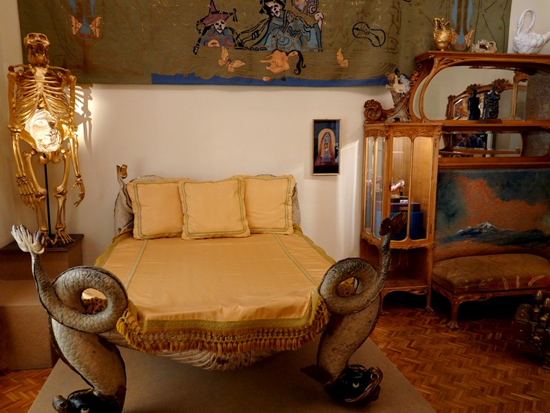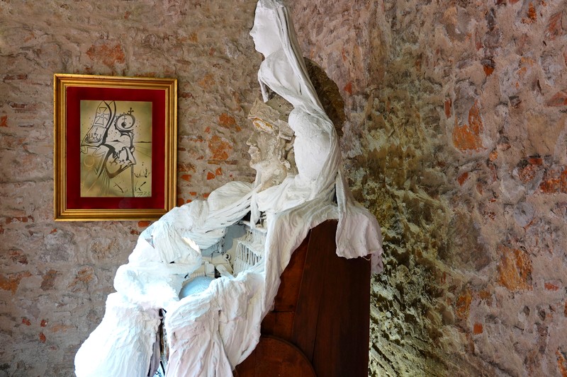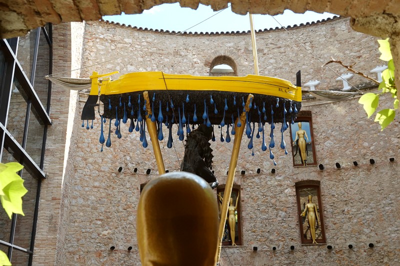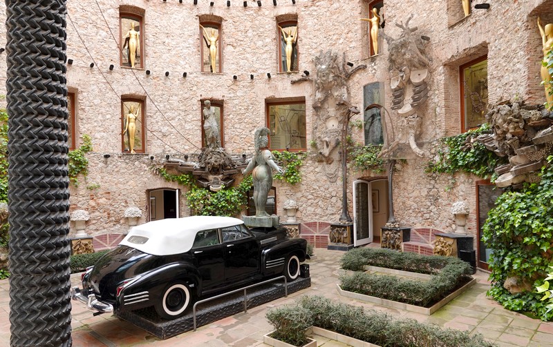 Petite émotion en découvrant la Cadillac pluvieuse, trônant à ciel ouvert, au milieu du patio du théâtre. Cadeau de Dali à Gala en 1938 alors qu’ils vivaient aux Etats-Unis, le véhicule fut par la suite reconverti en surprenante œuvre d’art : en effet, derrière les vitres, on distingue un chauffeur avec un chapeau-requin, alors qu’une femme en robe de soirée est assise à l’arrière, dans une ambiance détrempée où poussent des laitues, des chicorées, et où prolifèrent des escargots de Bourgogne. Et si on avait été plus attentifs, on aurait vu le monnayeur qui permet de faire tomber la pluie à l’intérieur de la voiture. Plus surréaliste, on a rarement vu !