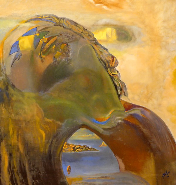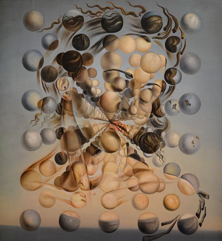 Là, notre regard est immédiatement attiré par la célèbre peinture Gala nue regardant la mer qui à 18 mètres laisse apparaitre le président Lincoln. Incroyable ! De près, seule Gala, nue de dos, apparait. Mais en prenant du recul et en plissant légèrement les yeux, c’est maintenant Lincoln que l’on distingue précisément. Dalí réalisa cette œuvre en hommage au peintre Mark Rothko, à partir d’une interprétation digitale du visage de Lincoln. Un concept de double image totalement novateur en 1975, qui n’est pas sans rappeler les actuels pixels de nos images numérisées…