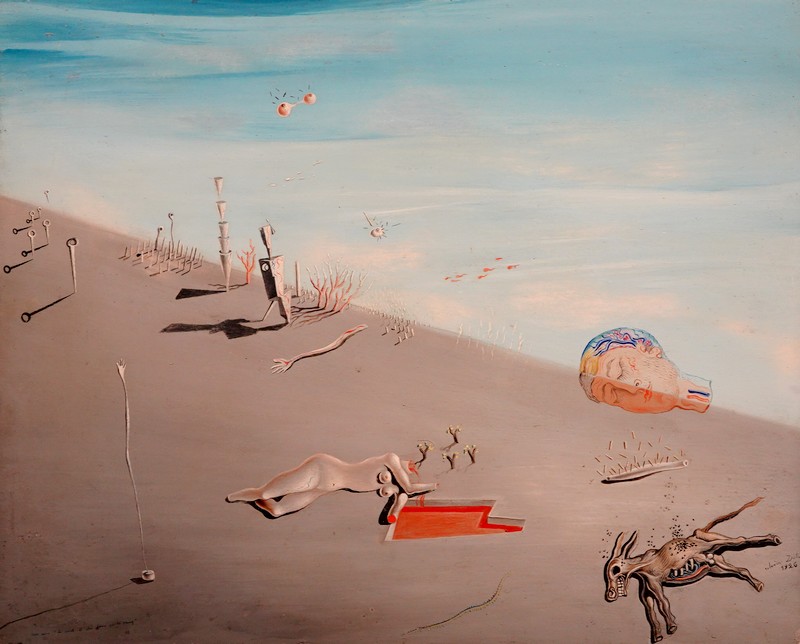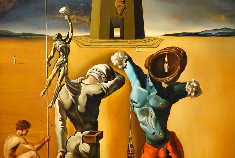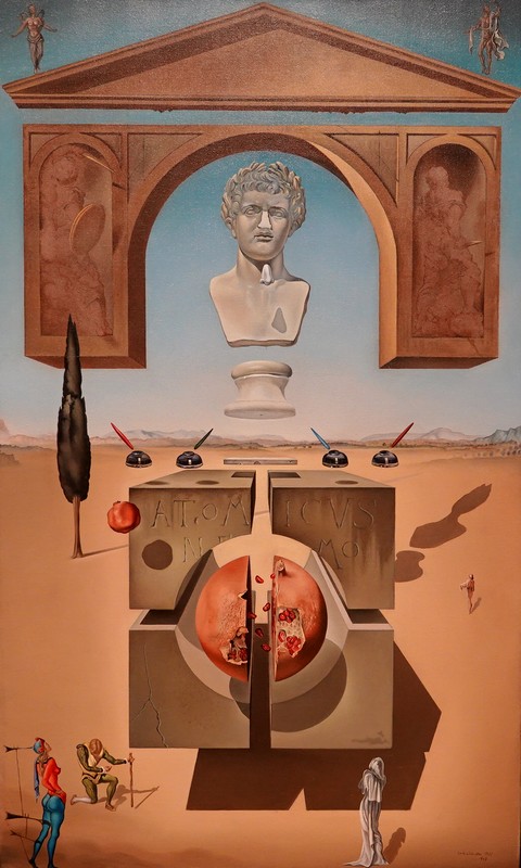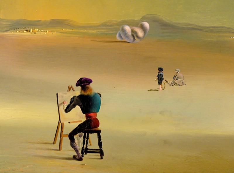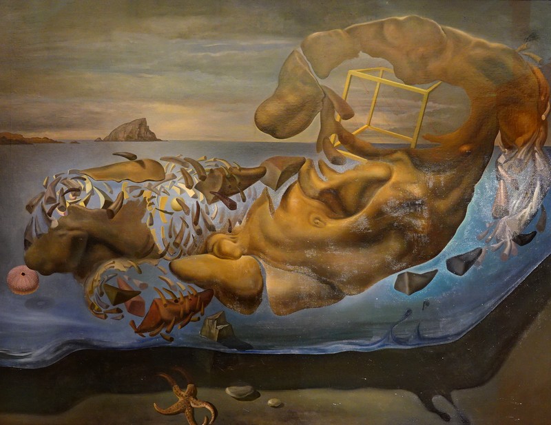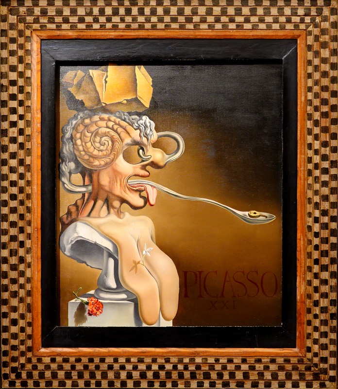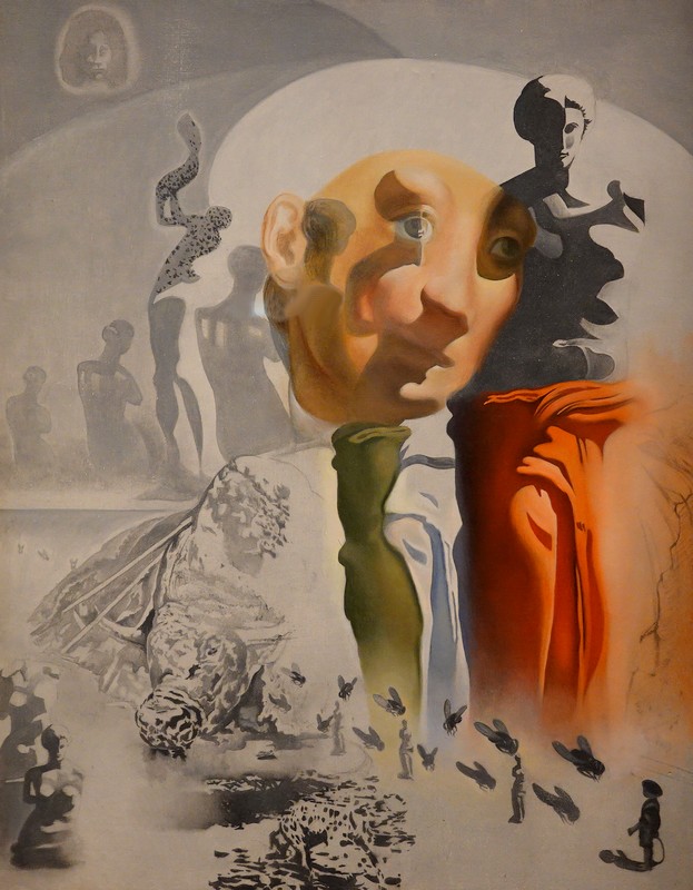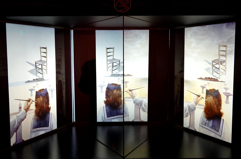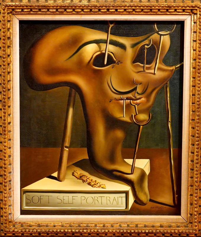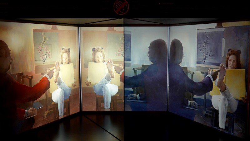 Plusieurs petites salles exposent des toiles peintes à différentes époques de sa vie. On découvre ainsi des peintures tantôt académiques, tantôt cubistes, voire même pointillistes. Mais sans conteste, ce sont les œuvres surréalistes qui nous fascinent le plus ! Et que dire des titres donnés aux dites œuvres, souvent sans rapport direct – pour nous, bien sûr ! – avec le tableau, comme ce Nez de Napoléon transformé en femme enceinte promenant son ombre avec mélancolie parmi des ruines originales… Certes, on aperçoit bien Napoléon, mais pour le reste, ça reste un peu flou ! Dans le genre loufoque, on aime bien cet autre tableau intitulé Autoportrait mou au lard grillé… C’est précisément là où Dali tutoie le génie : sans cesse, il nous promène entre le visuel pur et le ressenti, nous faisant nous interroger tant sur le monde extérieur tel qu’on le voit ou l’imagine que sur nous-même. D’un point de vue plus pictural, on a tout de même été étonnés de constater que certaines réalisations manquaient de soin et parfois même de finesse : Dali lui-même reconnaissait ce côté un peu brouillon, c’est pourquoi il préférait parfois voir les photos de ses œuvres plutôt que les originaux eux-mêmes !