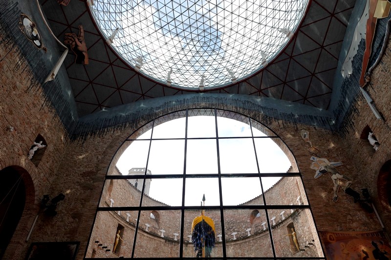 Après l’ambiance feutrée des petites salles d’exposition, le changement d’ambiance est radical quand on pénètre sur l’ancienne scène du théâtre, éclairée par une immense coupole. Ce dôme réticulé transparent conçu par l’architecte Emilio Pérez Piñero, représentait pour Dali la quintessence du surréalisme.
