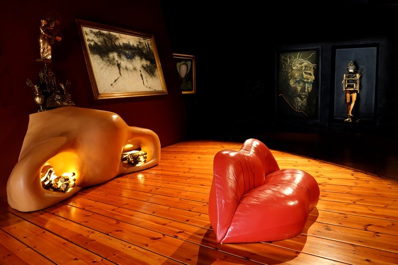 C’est au premier étage que l’on découvre la pièce la plus célèbre du musée, celle du Visage de Mae West pouvant être utilisé comme appartement surréaliste. A l’origine, c’est sur une toile que Dali peint ce surprenant portrait en 1934. Quarante ans plus tard, il recrée son œuvre en trois dimensions, utilisant un sofa, une cheminée et deux tableaux pour représenter les parties du visage de l’actrice. Néanmoins, pour le visiteur, il est difficile d’avoir une juste perception anatomique de face : pour cela, il faudrait monter sur un petit escalier interdit d’accès au public…