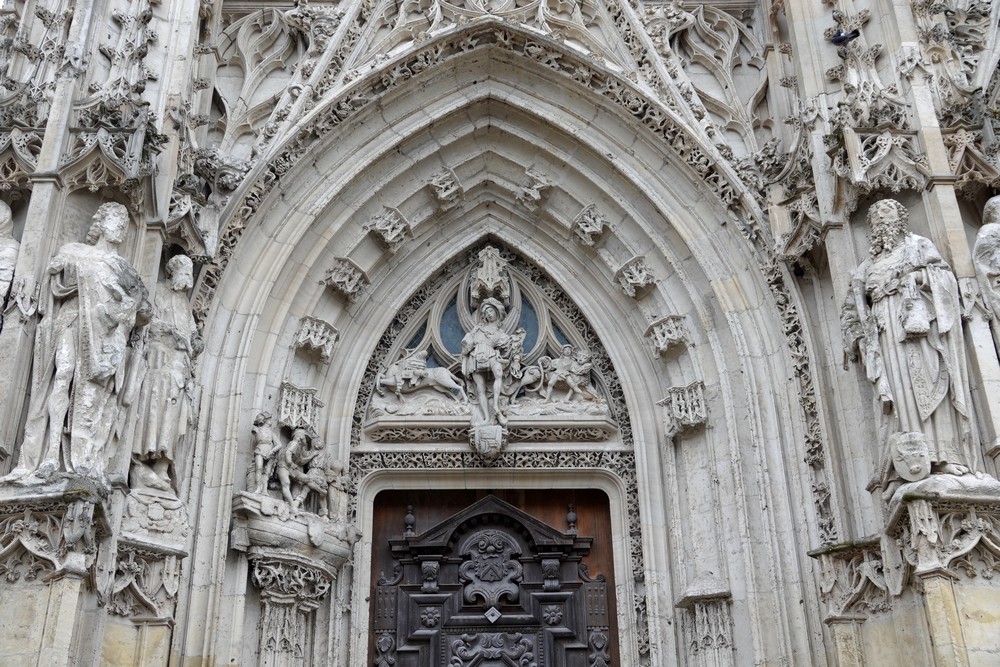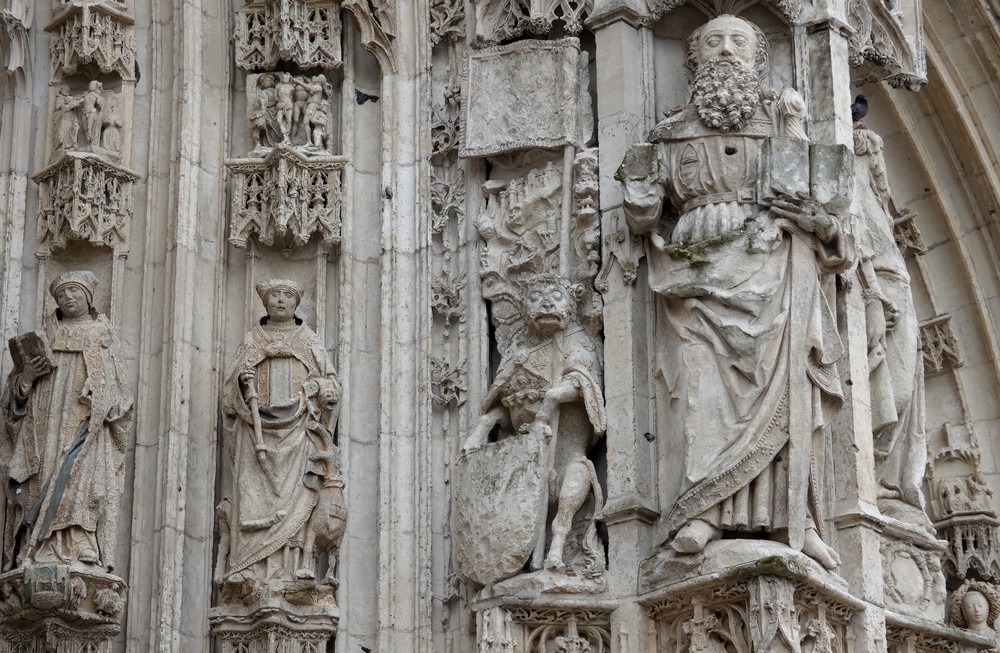 Notre premier arrêt est pour la Collégiale Saint-Vulfran. De style gothique flamboyant, l’édifice domine la ville de ses hautes tours depuis le début du XVIe siècle. Très endommagée par les bombardements de 1940, la façade de l’église conserve toutefois quelques remarquables statues, et à l’intérieur, on ne peut qu’être impressionnés par l’immense voute qui culmine à plus de 30m de haut.