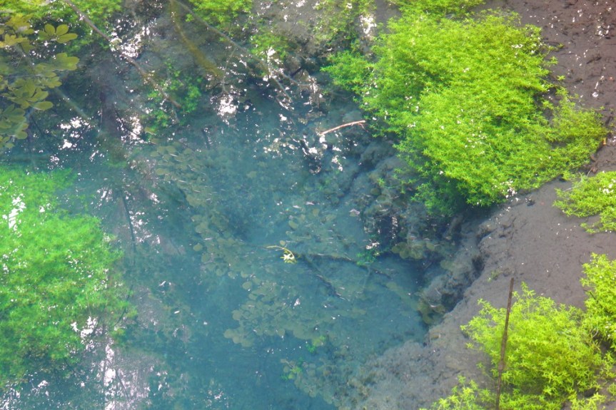 Autre curiosité de ce parc : les sources bleues ! Il s’agit d’une eau particulièrement pure, résurgence des eaux de pluie filtrées par le plateau et la vallée. L’eau contenue sur un fond crayeux et blanc opère une sélection chromatique de la lumière solaire. Une partie du spectre lumineux est absorbée par les fonds. La lumière bleue, elle, est retenue par les couches liquides supérieures, ce qui expliquerait la couleur bleue. (source Wikipédia)