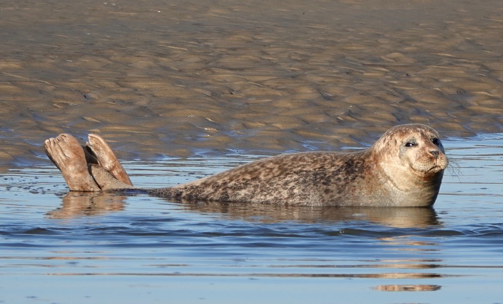 La marée est basse, il fait beau et… les phoques sont au rendez-vous ! A quelques mètres de nous, tranquillement installés sur la rive opposée au chenal, veaux marins – ou phoques communs – et phoques gris prennent la pause pour notre plus grand plaisir. Le plus sidérant, c’est que nous sommes absolument seuls alors que le site est facilement accessible et jouxte une grosse aire de camping-cars !