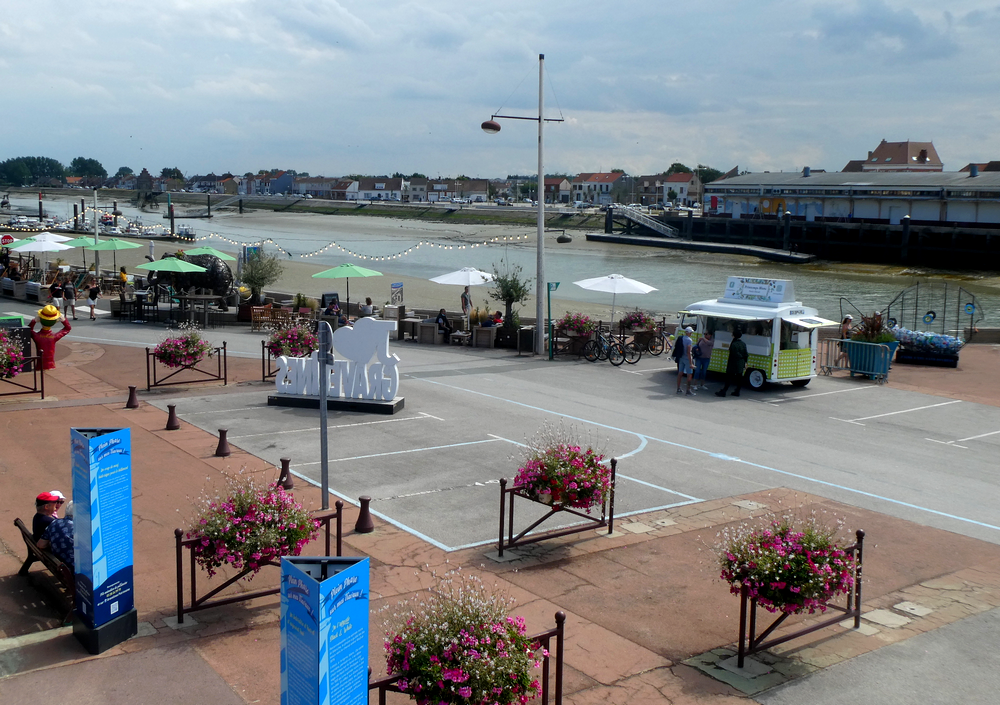 C’est donc à vélo que nous rejoignons Petit Fort Philippe, en frôlant au passage la ville médiévale de Gravelines que nous visiterons demain. La petite station balnéaire est très familiale, et nous sommes impressionnés par la plage dont la largeur avoisine le kilomètre : ce n’est donc pas aujourd’hui que nous irons tremper nos orteils dans la mer du Nord !