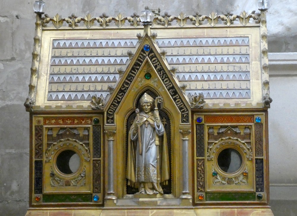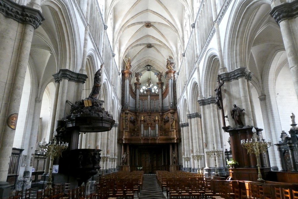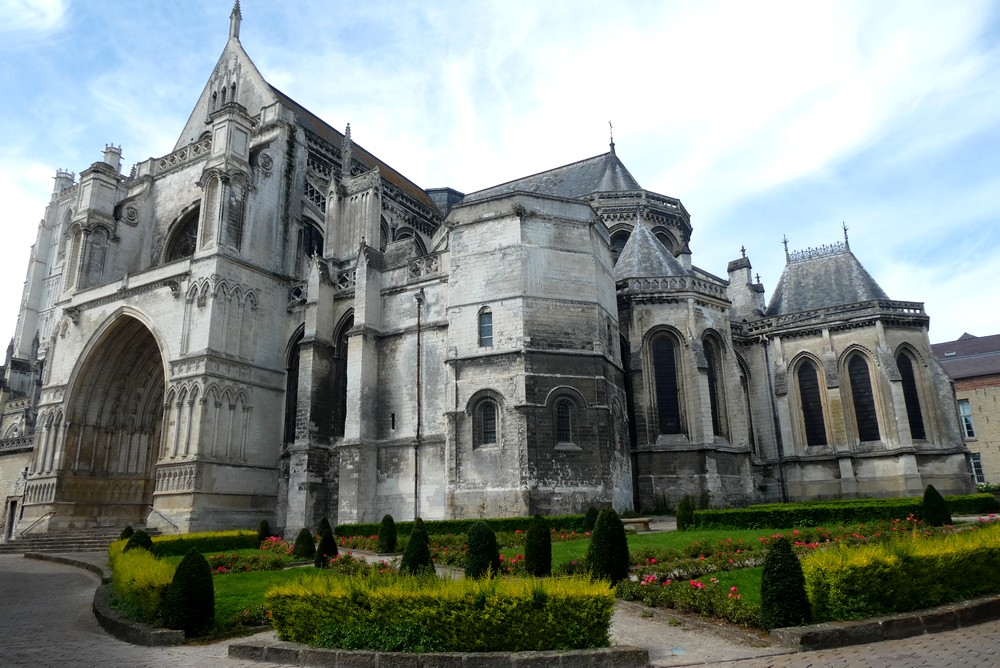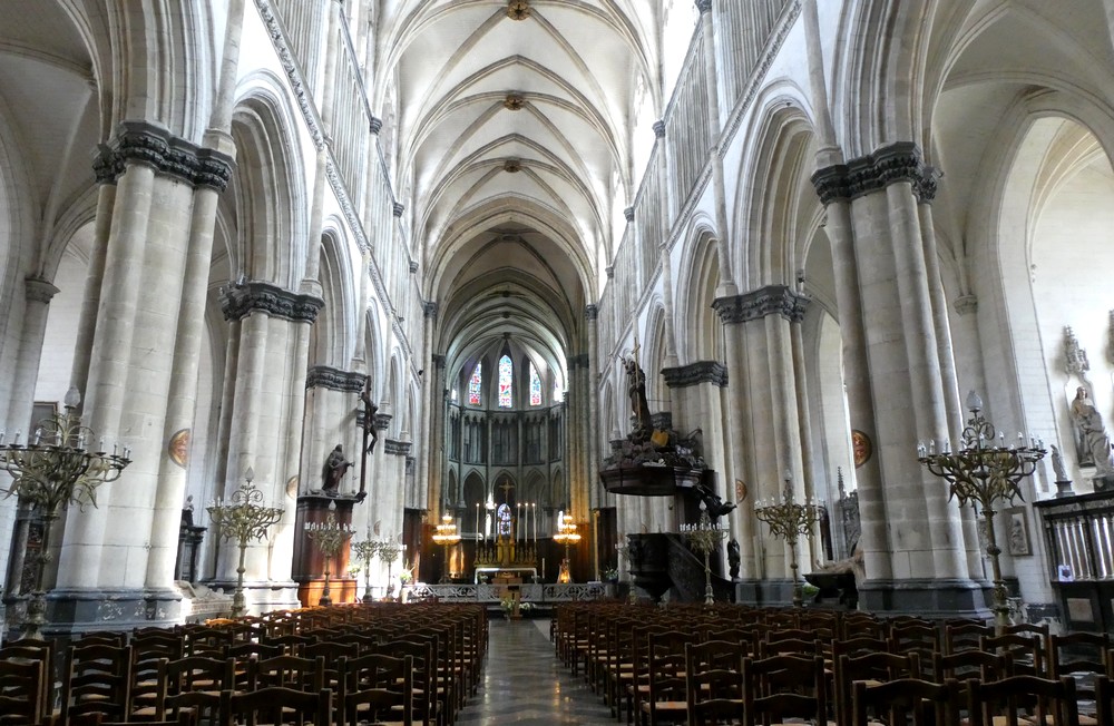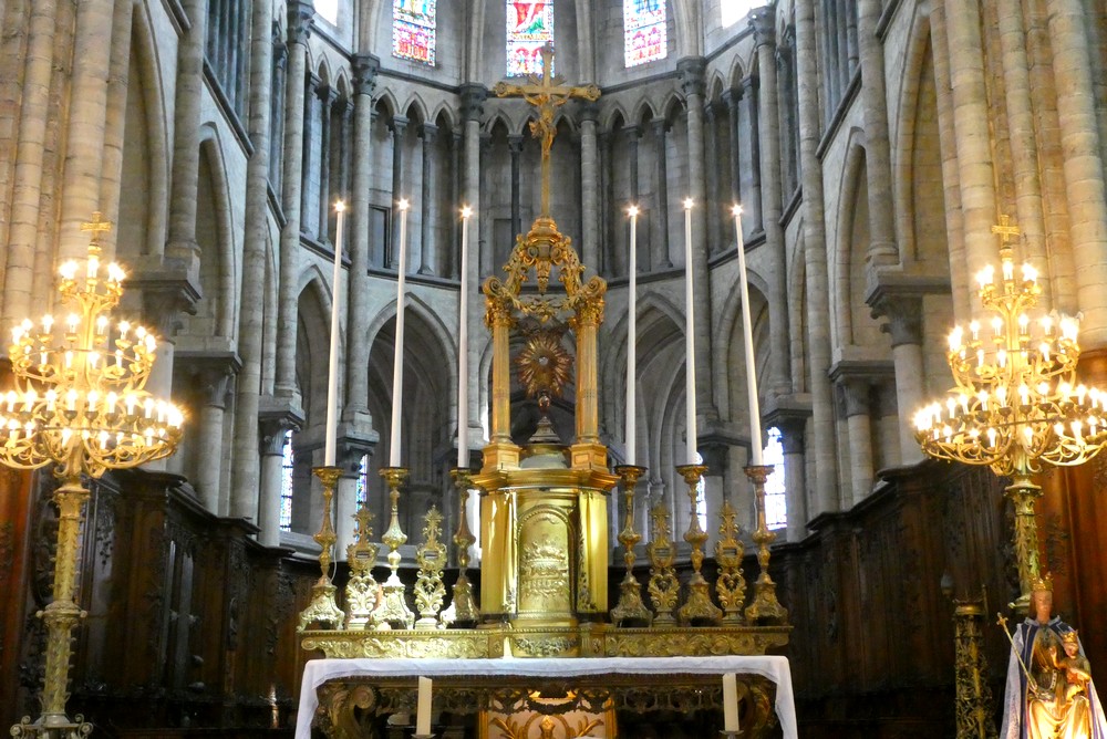 Encore quelques coups de pédale sur des pavés qui font tressauter nos vélos, et nous parvenons à la Cathédrale. Édifiée entre les XIIIe et XVIe siècles, son architecture mêle des éléments de style gothique primitif, rayonnant et flamboyant. L’intérieur est très riche, et le regard est capté par mille détails…