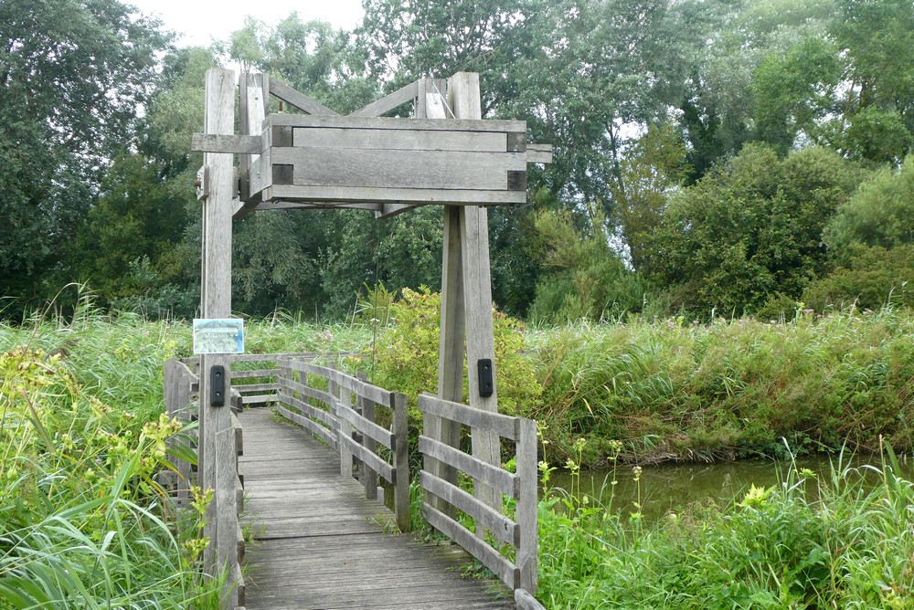 Le hic, c’est que la météo ne va pas spécialement nous laisser d’opportunités d’effectuer cette découverte du marais. Après un lundi venteux et pluvieux passé sans sortir, nous retournons à Clairmarais le mardi, et tentons une première balade à pied dans la Réserve naturelle nationale des étangs du Romelaëre. Le parcours est très bien aménagé, et la boucle d’environ 4km nous offre un bel aperçu de cet écosystème particulier. Le sentier sur pilotis enjambe parfois les canaux à l’aide de pont-levis, et un passage se fait même grâce à un bac à chaine que l’on actionne soi-même.