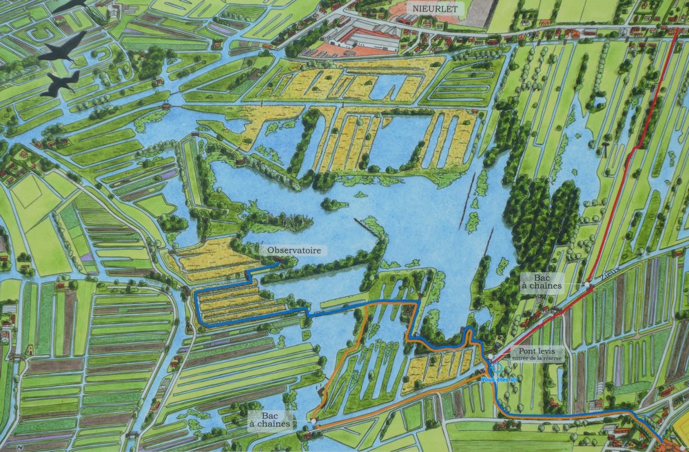 - Balade à pied dans la Réserve naturelle nationale des étangs du Romelaëre, accès libre, 3 itinéraires mais possibilité d’en coupler 2 (ce que nous avons fait).