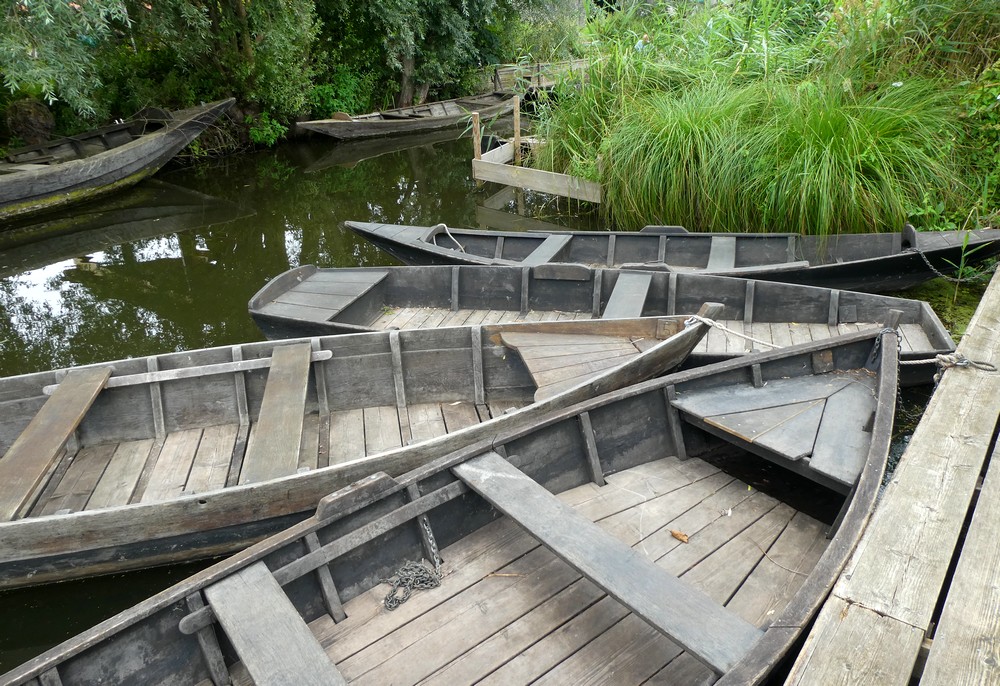 Une fois le circuit achevé, nous pédalons jusqu’à l’atelier des Faiseurs de Bateaux, où deux frères perpétuent la tradition en fabriquant des escutes et des bacôves, ces embarcations traditionnelles en chêne, utilisés durant des siècles par les maraîchers d’autrefois. Là, il est également possible d’effectuer une balade en barque dans les marais. Mais la grisaille du ciel et la pluie qui menace nous dissuadent d’entreprendre la balade, et on se contente d’admirer la production horticole du site. Enfin un peu de couleur !