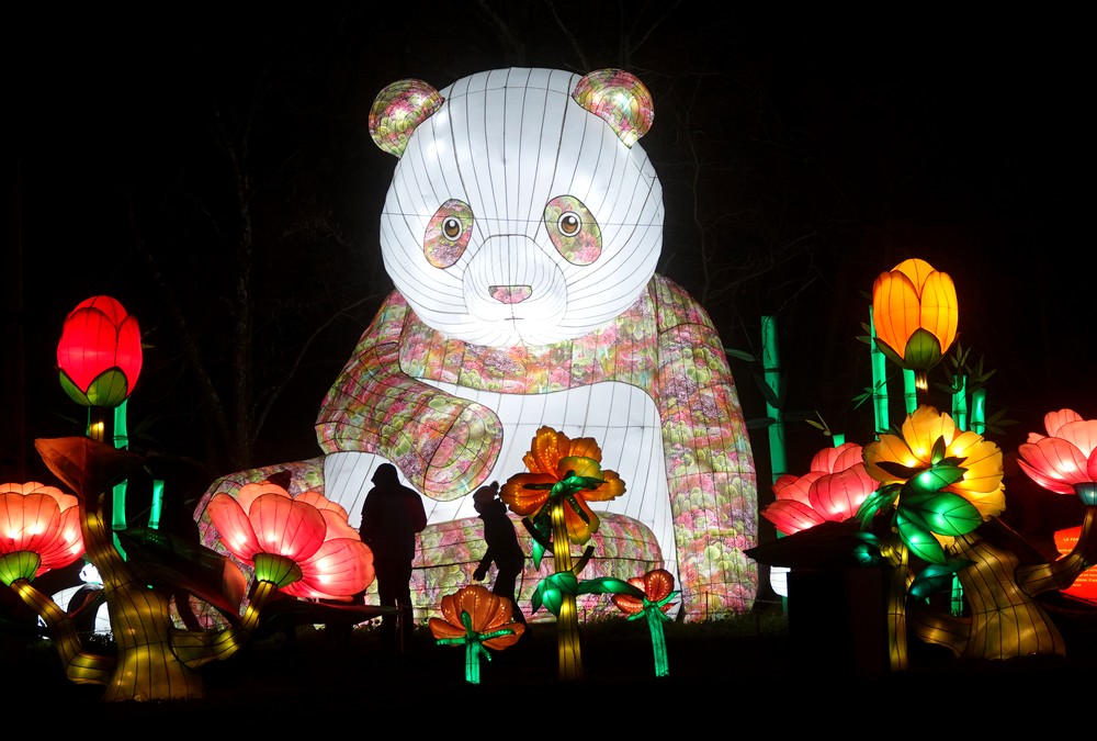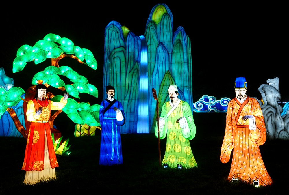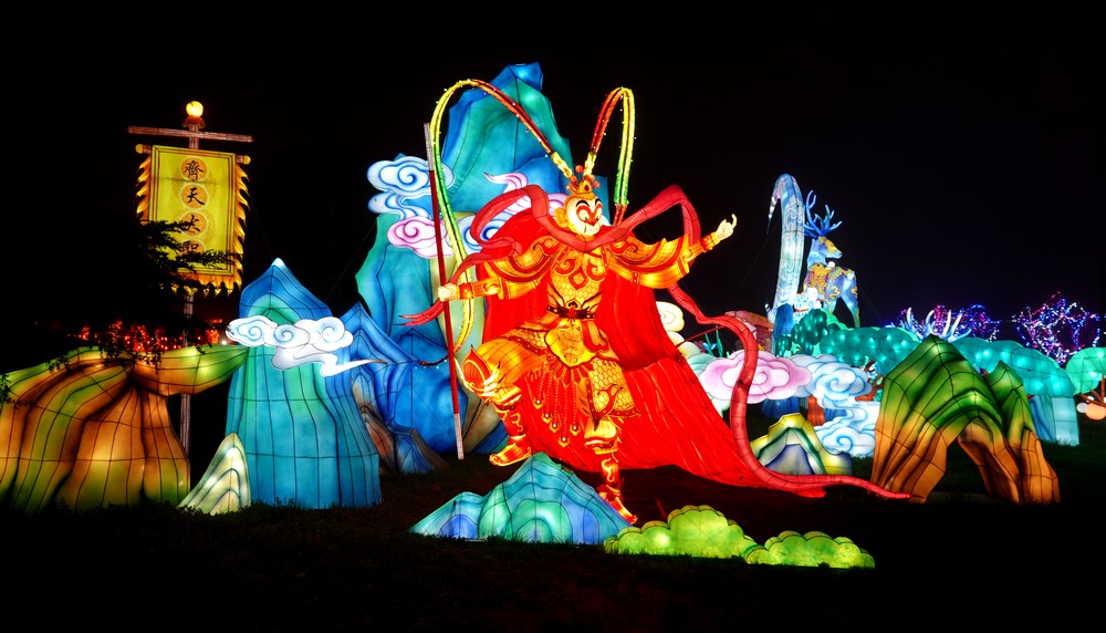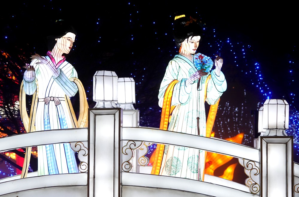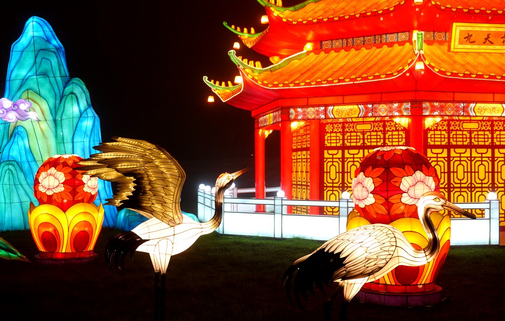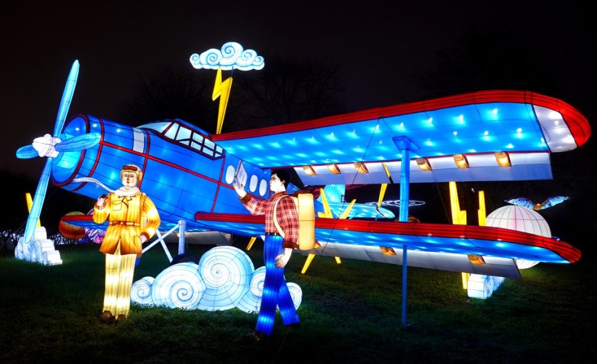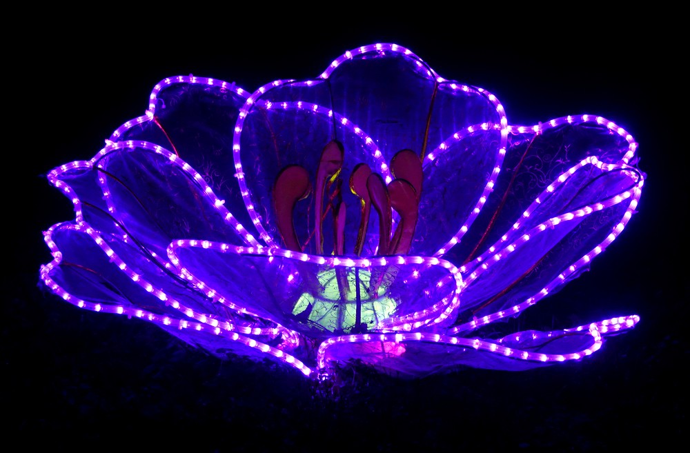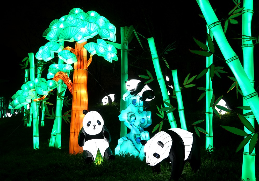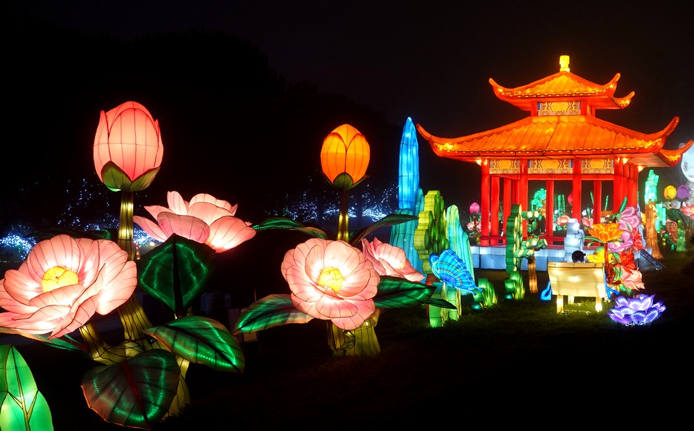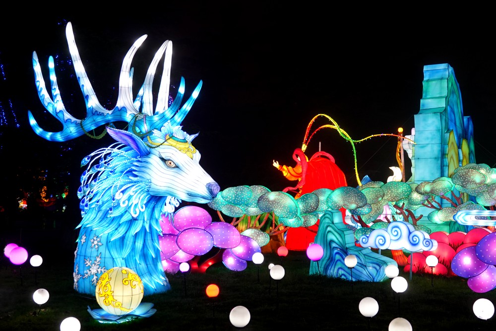 Vers 16h30, nous partons du camping à vélo en direction de Blagnac, commune limitrophe à Toulouse et célèbre pour son industrie aéronautique. Pour l’heure, ce ne sont pas les Airbus qui motivent notre pédalage, mais le Festival des Lanternes qui, pour la première fois, s’est invité dans le parc du Ritouret. A 18h tapante, nous pénétrons sur le site et immédiatement, nous sommes conquis par cette féérie de couleurs ! sur les huit hectares du domaine, pas moins de 45 structures lumineuses – monumentales pour certaines – et recouvertes de soie ont été installées par des artisans chinois de la ville de Zigong, dans la province du Sichuan. En effet, c’est à Zigong que fut créé le festival des lanternes chinois, sous la dynastie Tang, entre le VIIe et Xe siècle. Festival s’est ensuite exporté à Pékin, Hong-Kong et Shanghai, pour enfin parvenir à Blagnac le 1er décembre 2021 ! Les opportunités des photos étant multiples, nous avons décidé de consacrer un article spécial à ce festival carrément extraordinaire, et une fois n’est pas coutume, cette publication est entièrement visuelle !