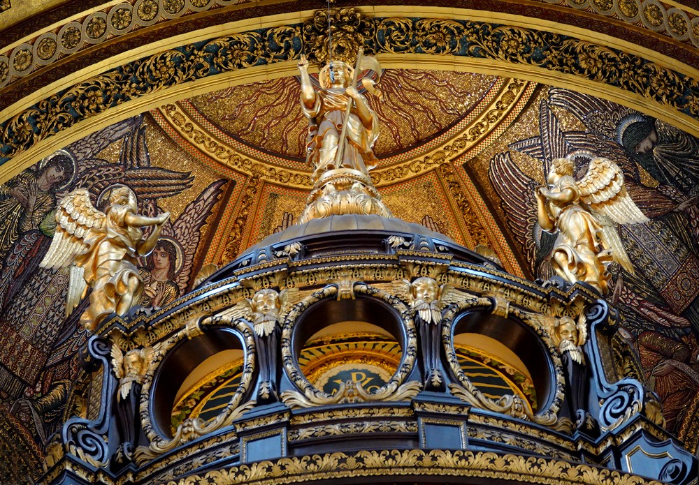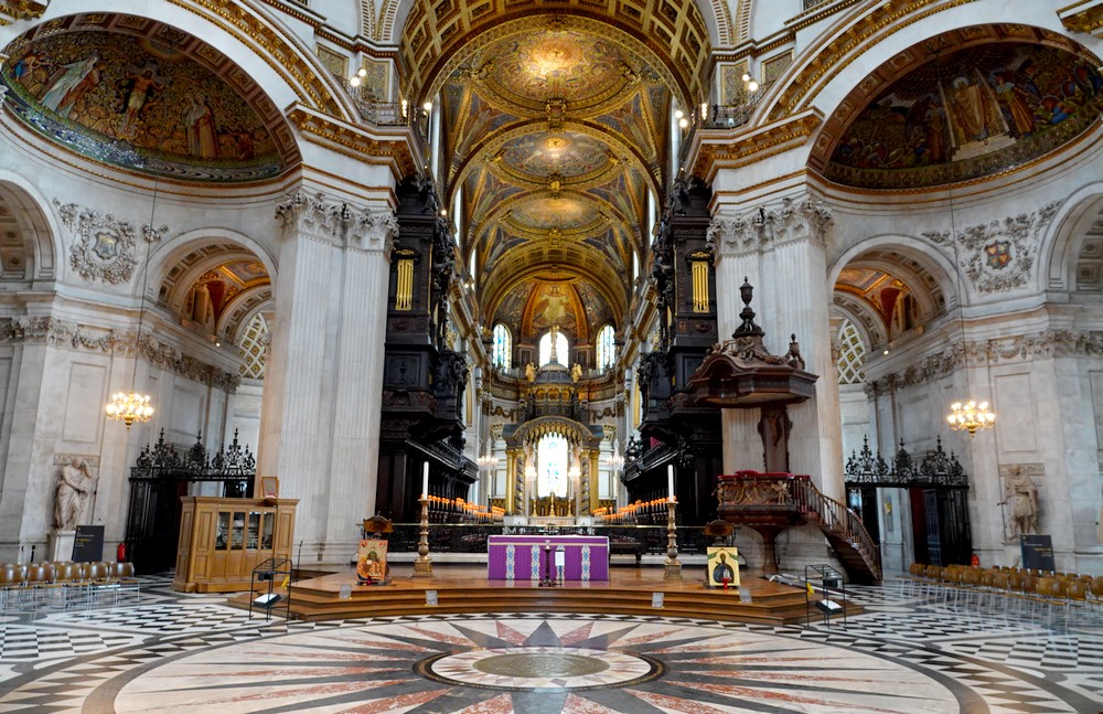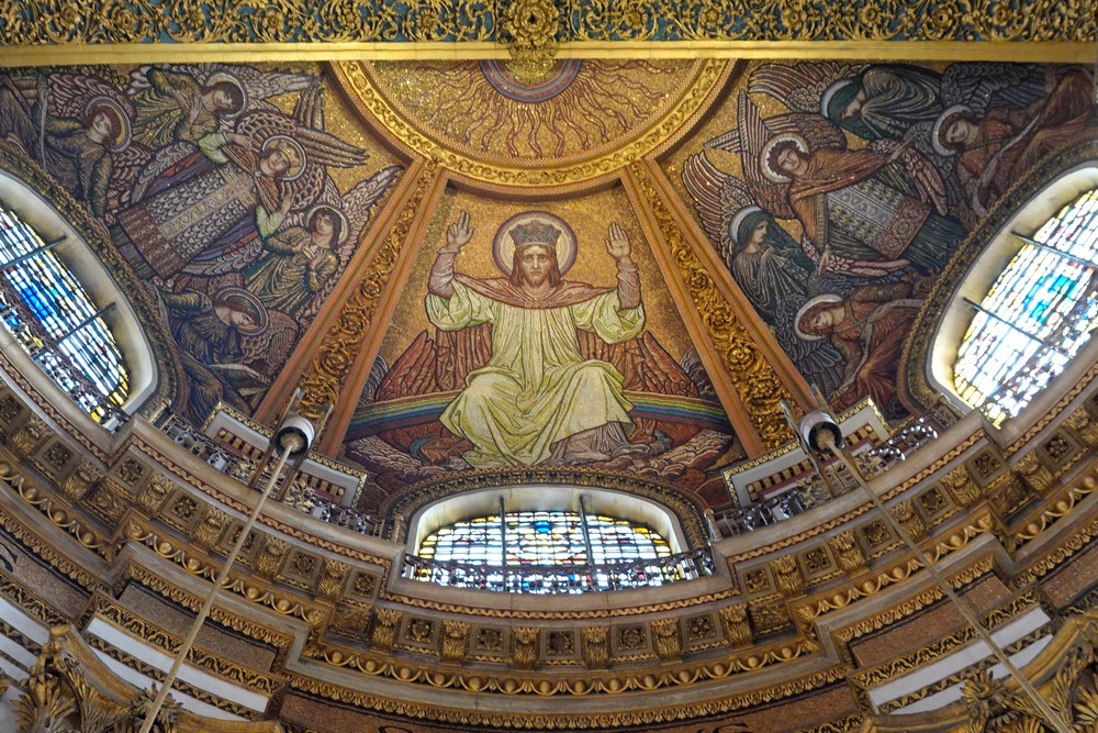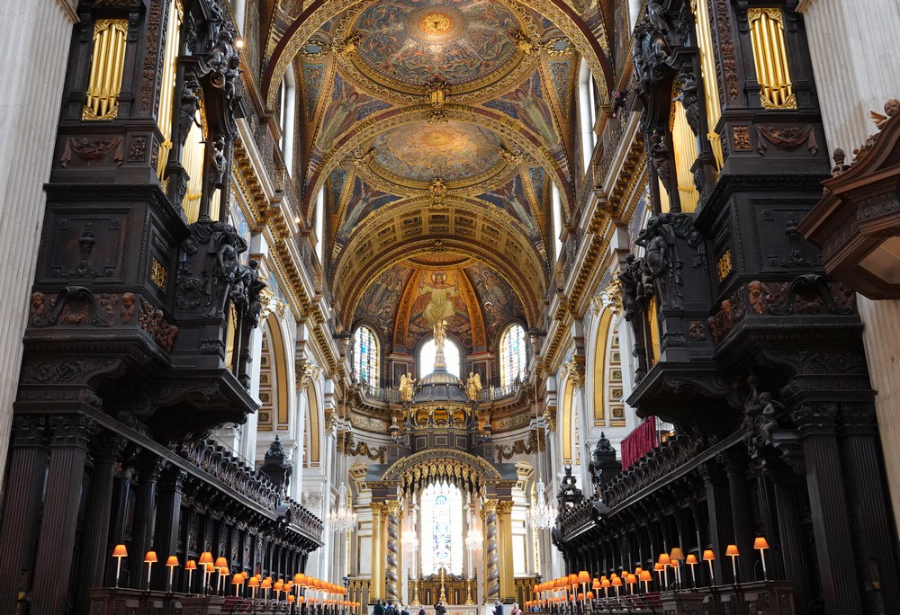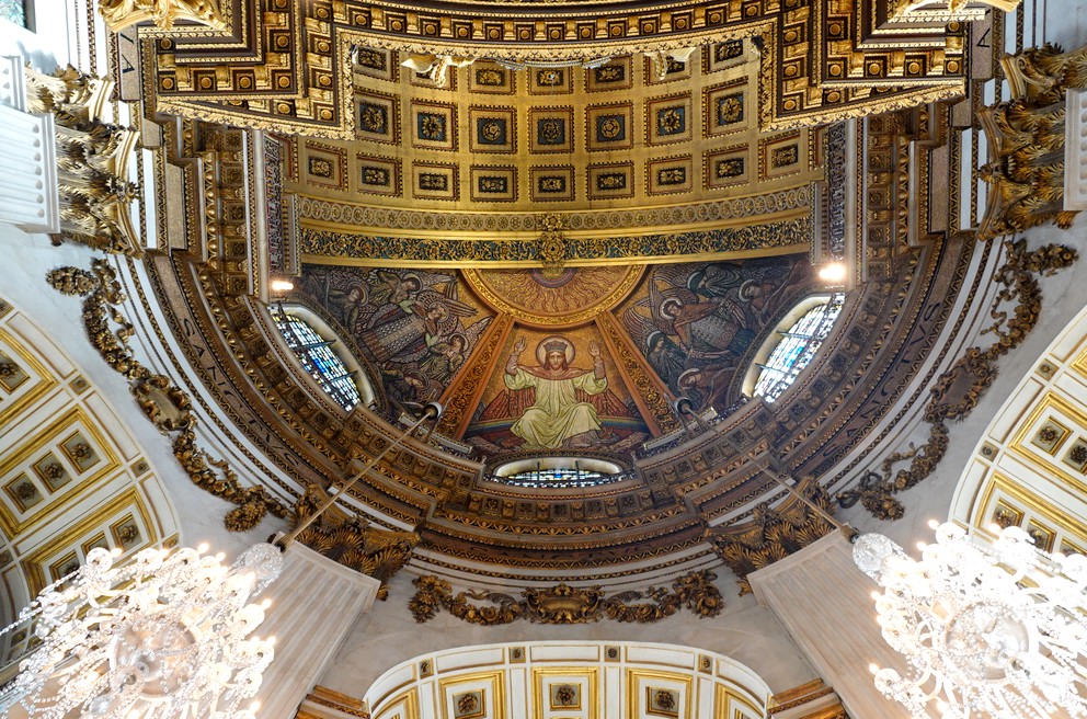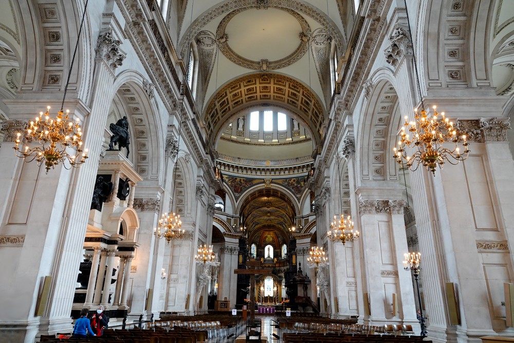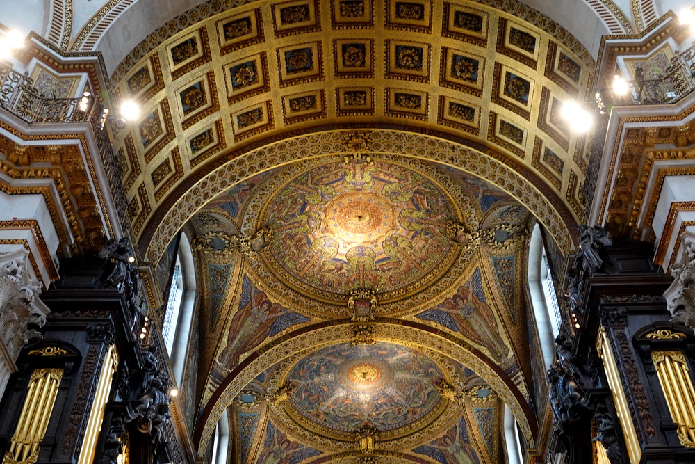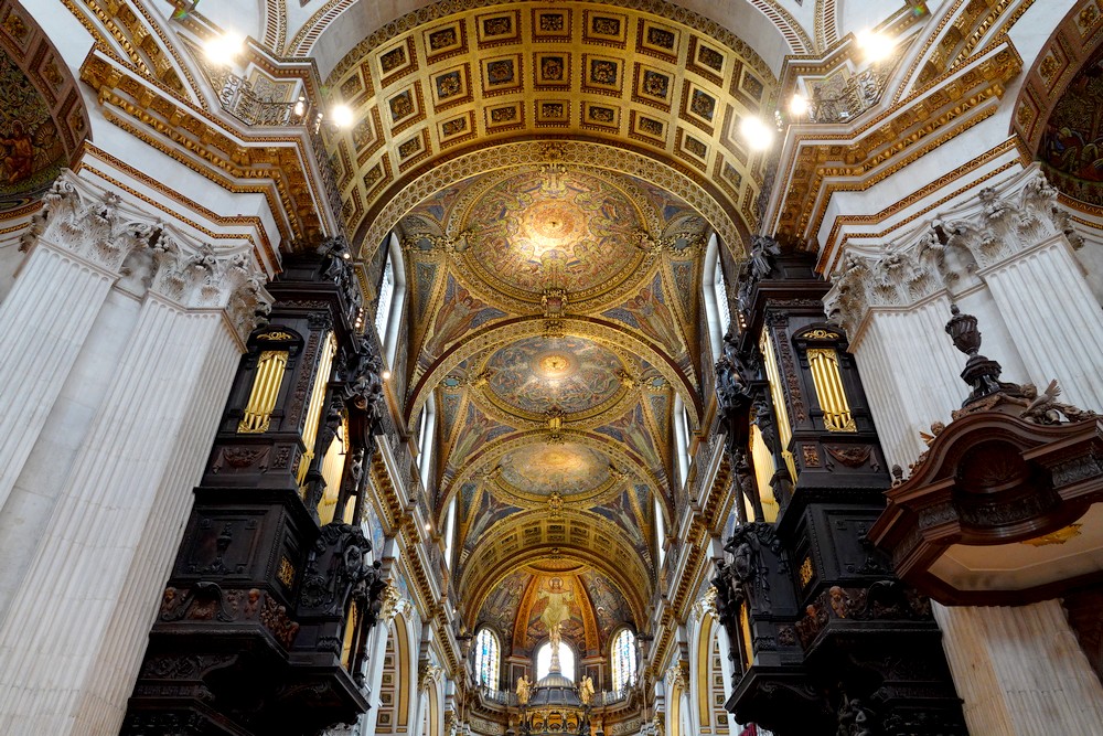 On arpente d’abord la nef longue de 150m, et ornée de nombreuses peintures et mosaïques, dans un décor baroque unique au Royaume-Uni. Et bien sûr, on ne peut s’empêcher de lever le nez pour admirer la splendide coupole qui culmine 110m au-dessus de nos têtes !