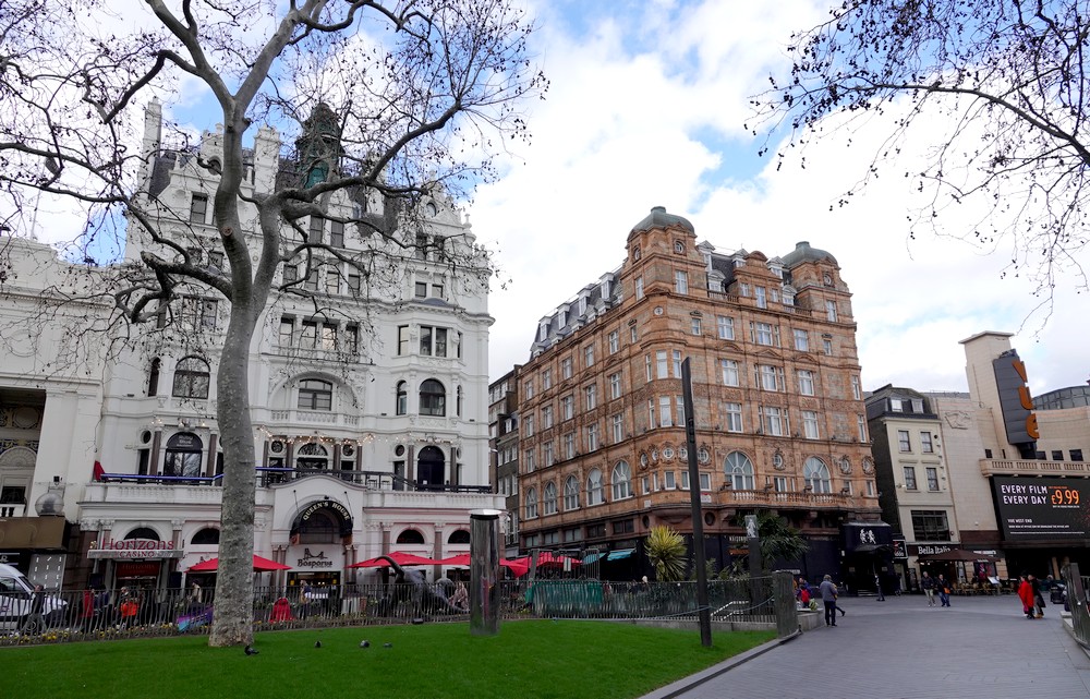 Puis nous poursuivons notre balade vers Soho via Leicester Square. Réputés pour leurs nombreux théâtres, restaurants et magasins, ces quartiers attirent d’ordinaire des hordes de visiteurs du monde entier. Mais actuellement, on sent bien que le secteur du tourisme est encore en berne, car la foule se fait rare…