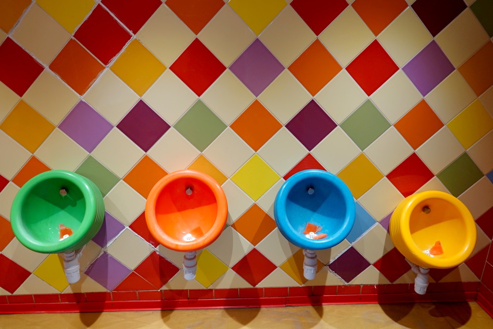On rejoint ensuite Regent Street où un arrêt chez Hamley’s s’impose ! Séquence nostalgie pour moi qui, autrefois, ai longuement arpenté le plus ancien magasin de jouets au monde – et le plus grand de Londres – avec ma fille. Et ici, même les toilettes sont originales !