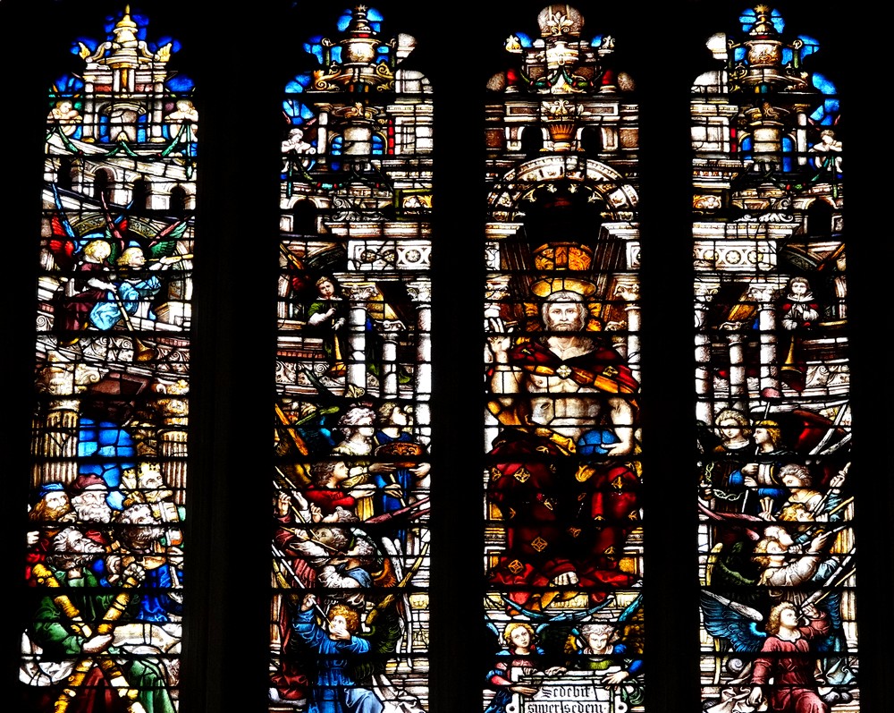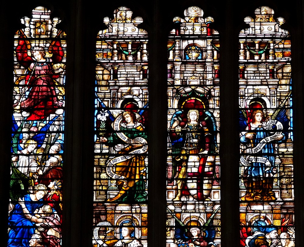 De même, les immenses vitraux de la chapelle comptent parmi les plus beaux de cette époque. On en compte douze grands de chaque côté de la nef et deux encore plus grands aux extrémités est et ouest. À l’exception du vitrail est, les autres sont tous d’origine flamande et datent de 1515 à 1531.
