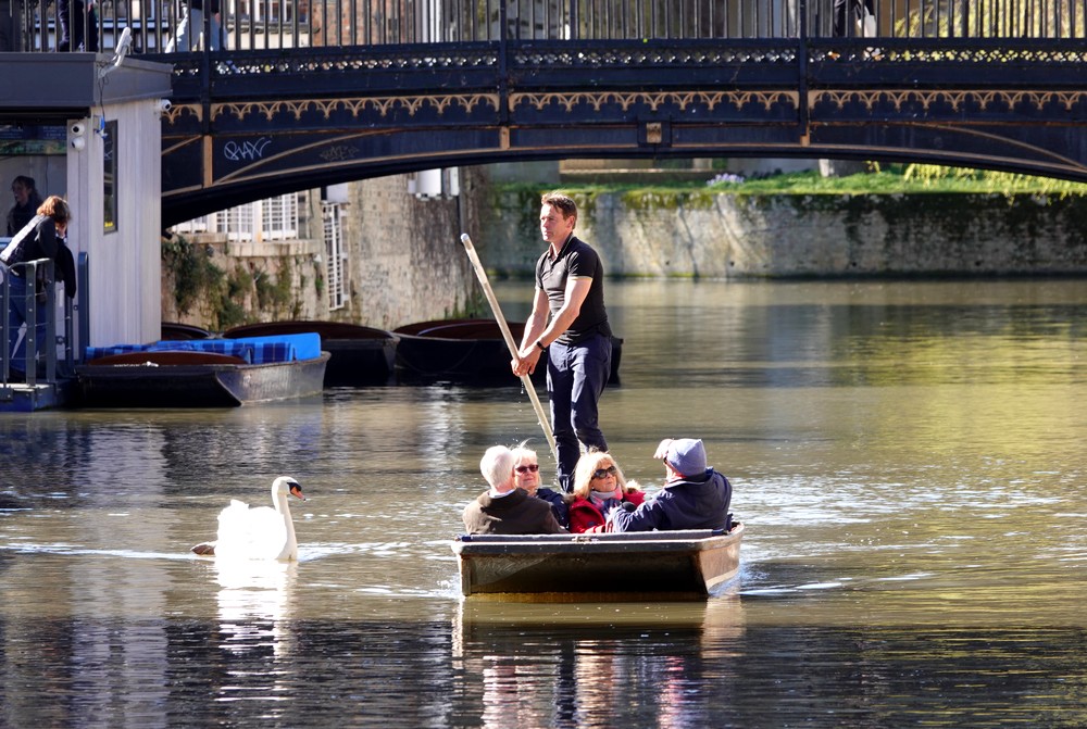 Une seule solution pour tenter d’apercevoir un peu mieux ces prestigieuses universités : faire un tour en punt, ce bateau traditionnel à fond plat qui se manœuvre – difficilement ! – à l’aide d’une grande perche. Nous louons donc les services d’un « chauffeur » – il est possible mais périlleux de vouloir diriger soi-même un punt ! – et nous nous laissons embarquer pour une balade de cinquante minutes.