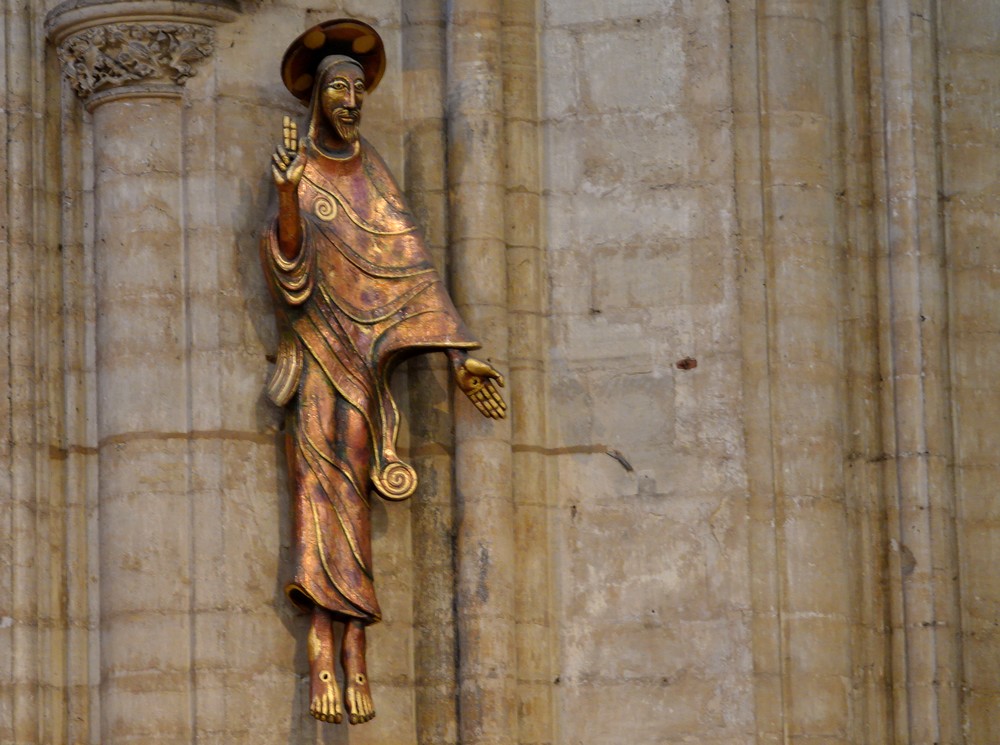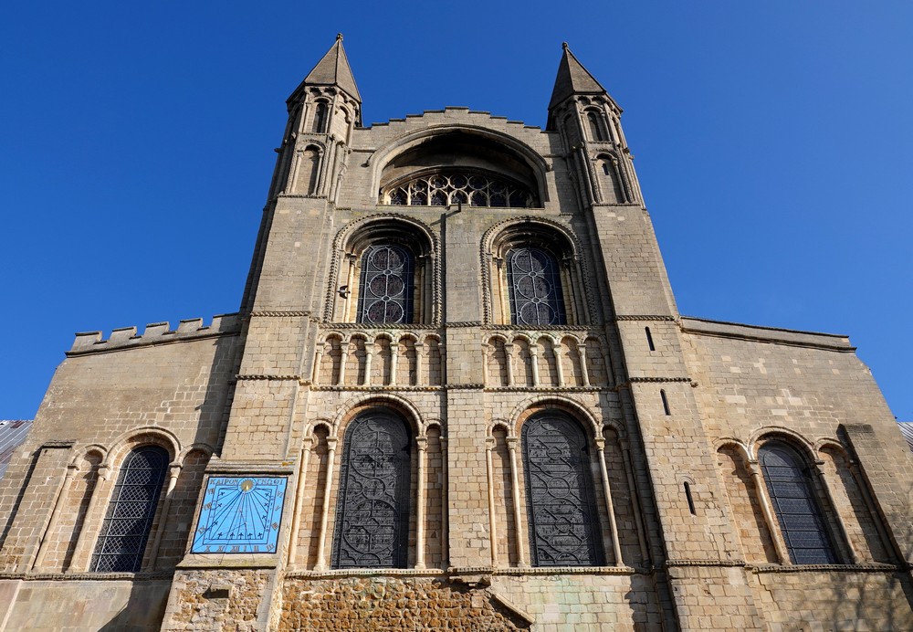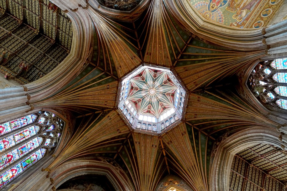 Comme nous sommes un peu en avance – non, pas possible !?! – nous commençons par admirer l’architecture extérieure, principalement la superbe façade arrière d’où l’on aperçoit la tour Octogone. Côté histoire, l’abbaye créée par Sainte Etheldedra ayant été détruite par les Danois en 870, un nouveau monastère est reconstruit pour devenir une communauté bénédictine en 970. Installé autrefois sur une île au milieu de marais, le site était difficilement accessible aux Normands – qui peu à peu installaient leur domination en Angleterre – et il devint un bastion de la résistance saxonne. Pourtant, de cette époque il ne subsiste rien, et les premières pierres de l’église sous sa forme actuelle sont posées en 1083, sous l’égide de l’abbé Siméon, un Normand. En 1109, l’église – une des plus belles d’Angleterre à l’époque – est consacrée cathédrale.
