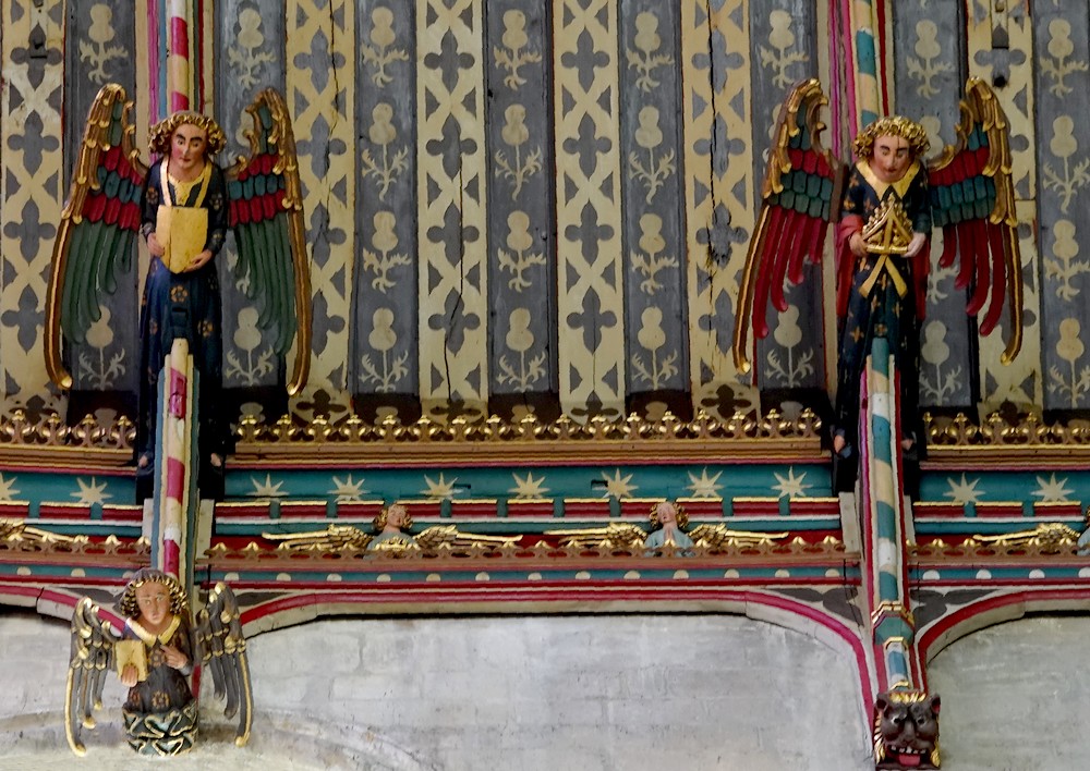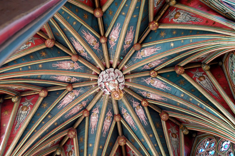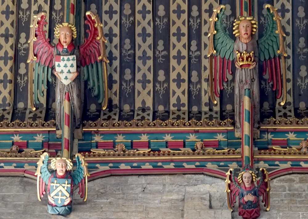 Ce qui surprend, quand on pénètre dans l’édifice, c’est la longueur de la nef normande, surmontée d’un magnifique plafond entièrement peint. C’est d’ailleurs dans ce cadre somptueux que fut tournée la scène du mariage de la future reine Elizabeth, dans la série The Crown, en lieu et place de l’abbaye de Westminster !