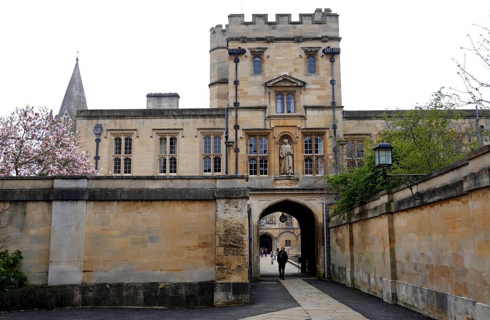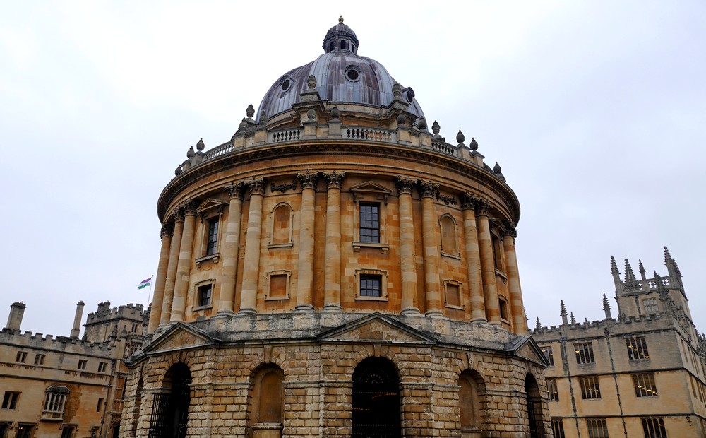 Nous rejoignons ensuite la Radcliffe Camera, une bibliothèque universitaire de style palladien, créée au XVIIIe siècle par James Gibbs, qui fait face à la University Church of St Mary the Virgin. Tout proche, on jette un œil à l’All Souls College, actuellement fermé aux visiteurs. Ce collège est fameux pour la fête commémorative qui y est célébrée tous les… 100 ans ! La dernière cérémonie a eu lieu en 2001, la prochaine aura donc lieu en 2101 : pas sûr que l’on puisse y assister…