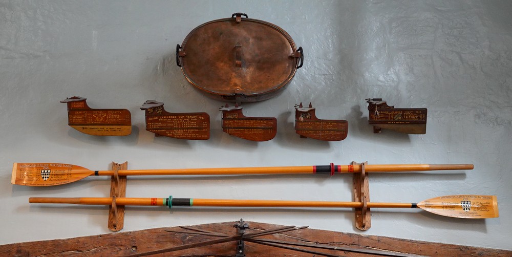 Un étage plus bas, le Old Kitchen Bar affiche sur ses murs les trophées remportés par les étudiants lors des célèbres courses d’aviron les opposant aux collèges de Cambridge.