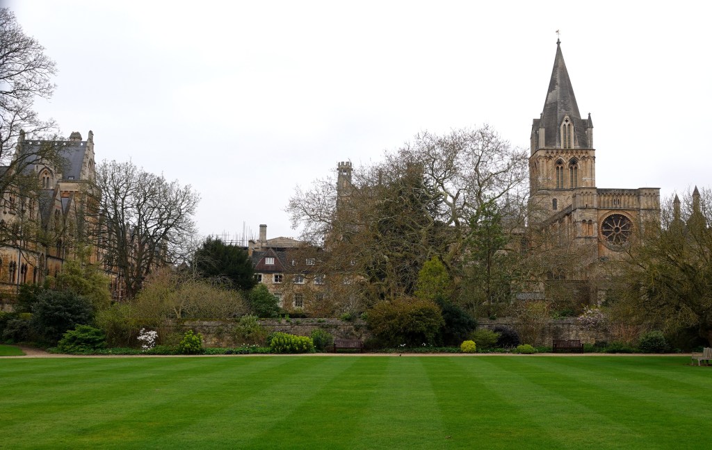 Un peu plus tôt qu’hier, c’est vers 8h45 que nous partons, toujours à vélo, au centre d’Oxford. Nous nous garons non loin de la Carfax Tower, et nous rejoignons à pied Christ Church dont les portes ouvrent à 10h.