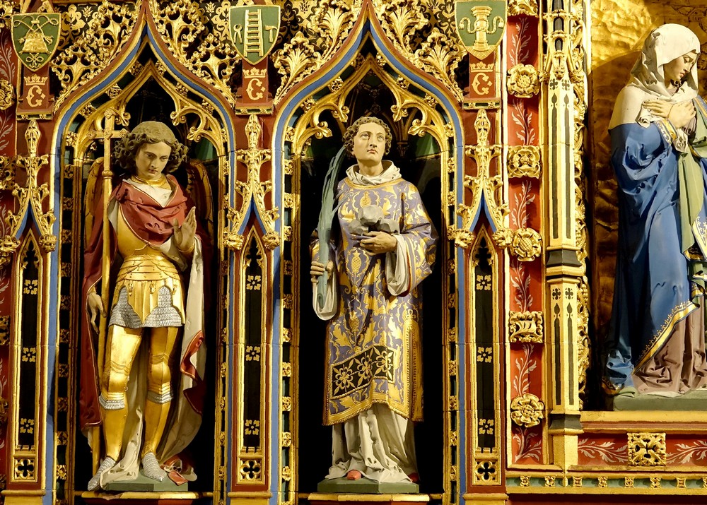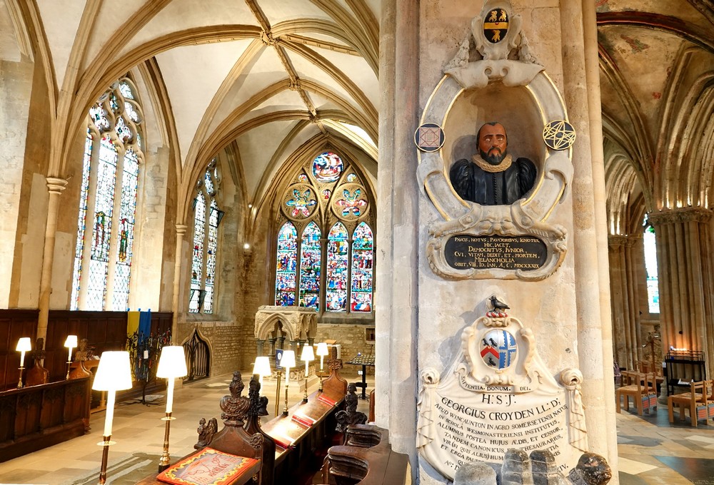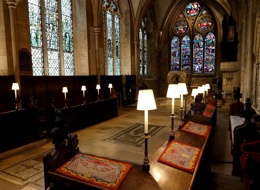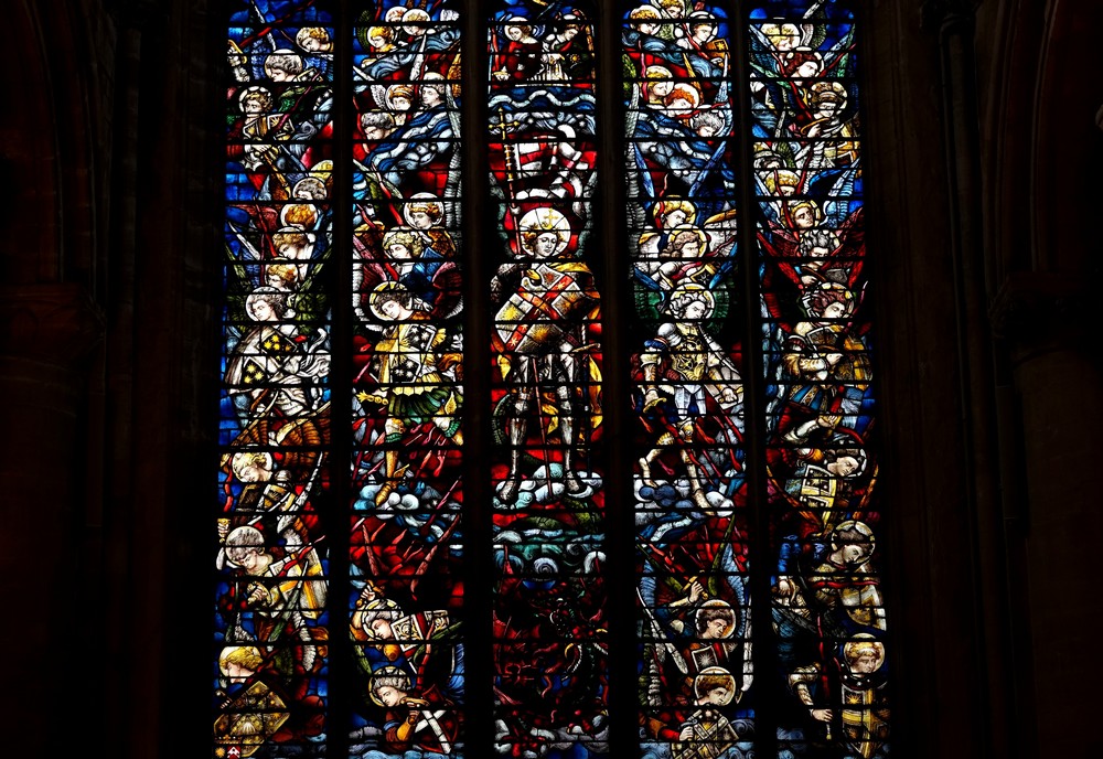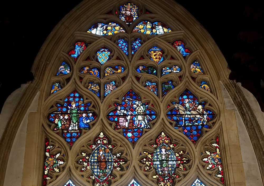 La cathédrale est également réputée pour la qualité de ses vitraux dont certains sont très anciens, comme celui qui montre l’assassinat de Thomas Becket, le 29 décembre 1170.