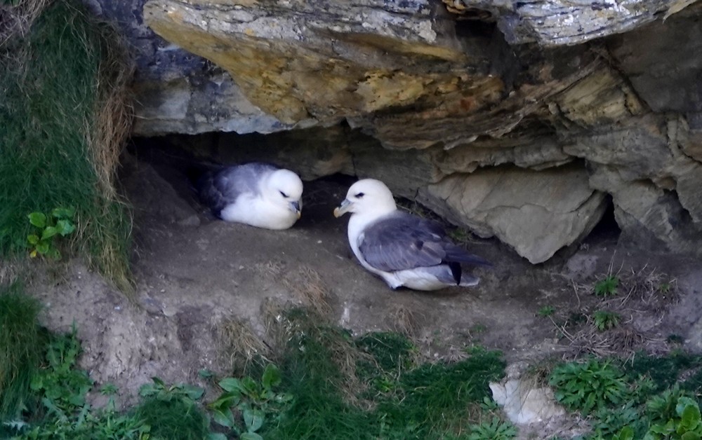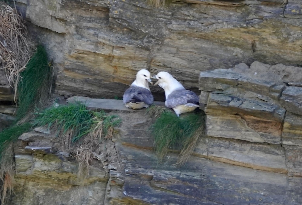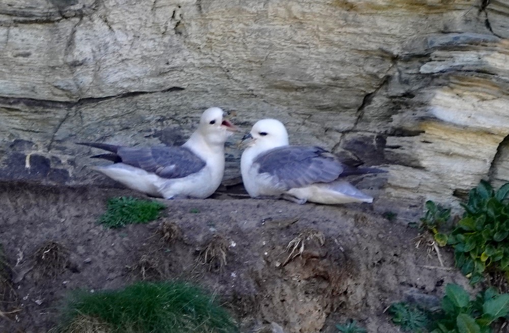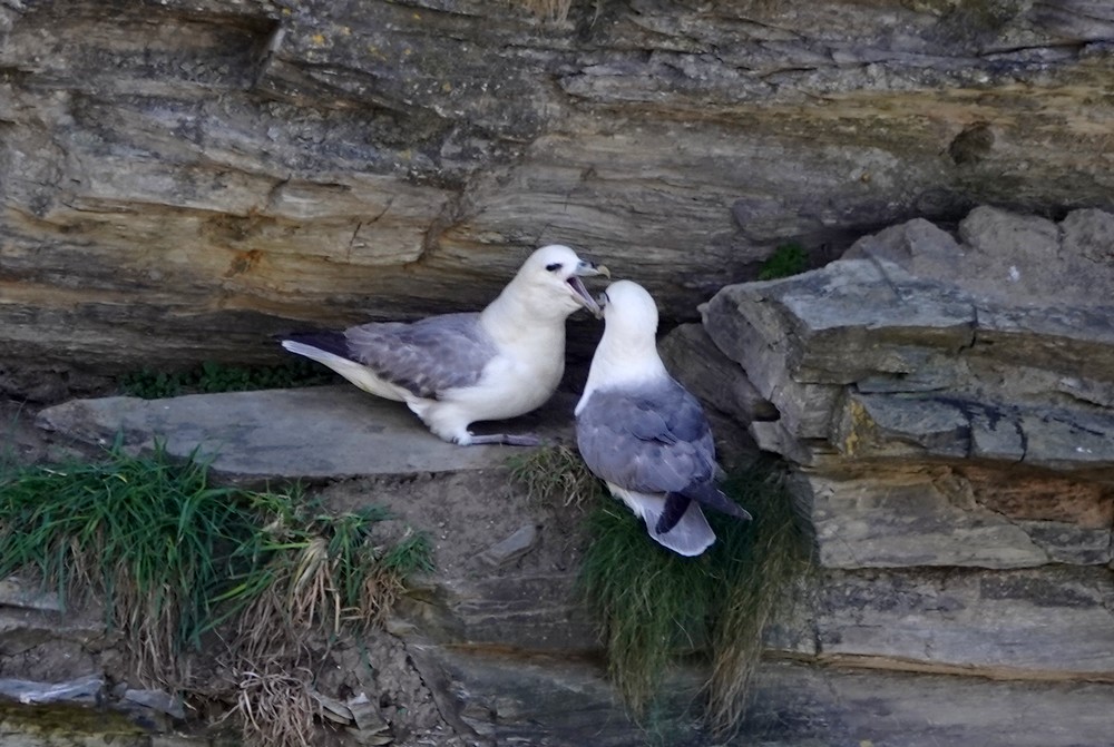 La remontée est agréable, et nous prenons le temps d’observer des fulmars boréaux – ou pétrel fulmar – qui nichent dans la falaise.