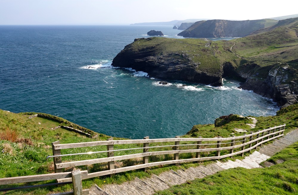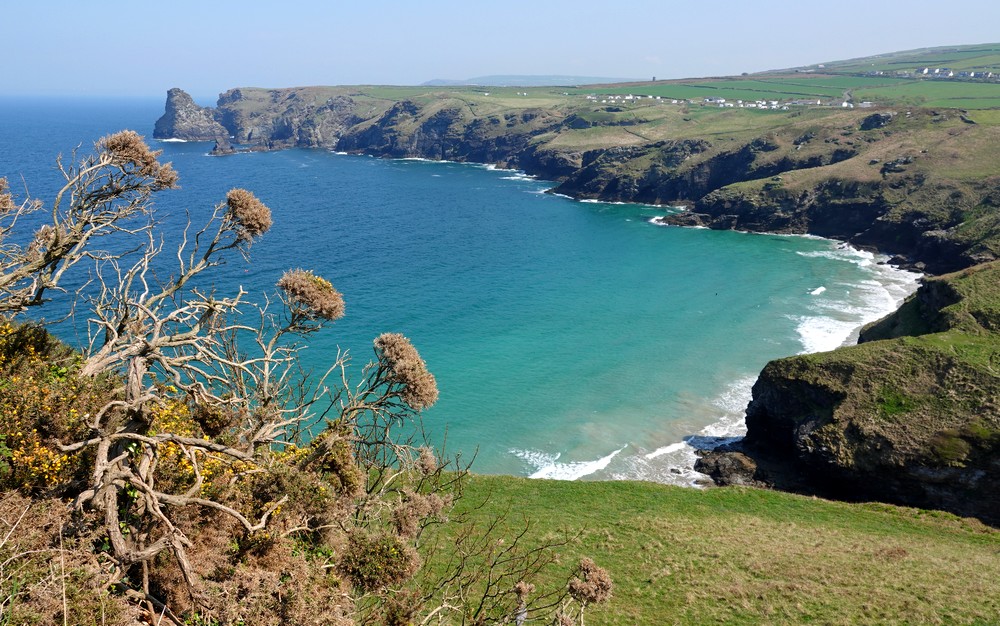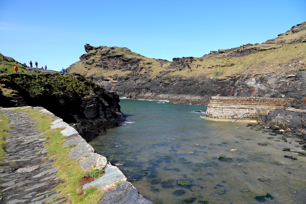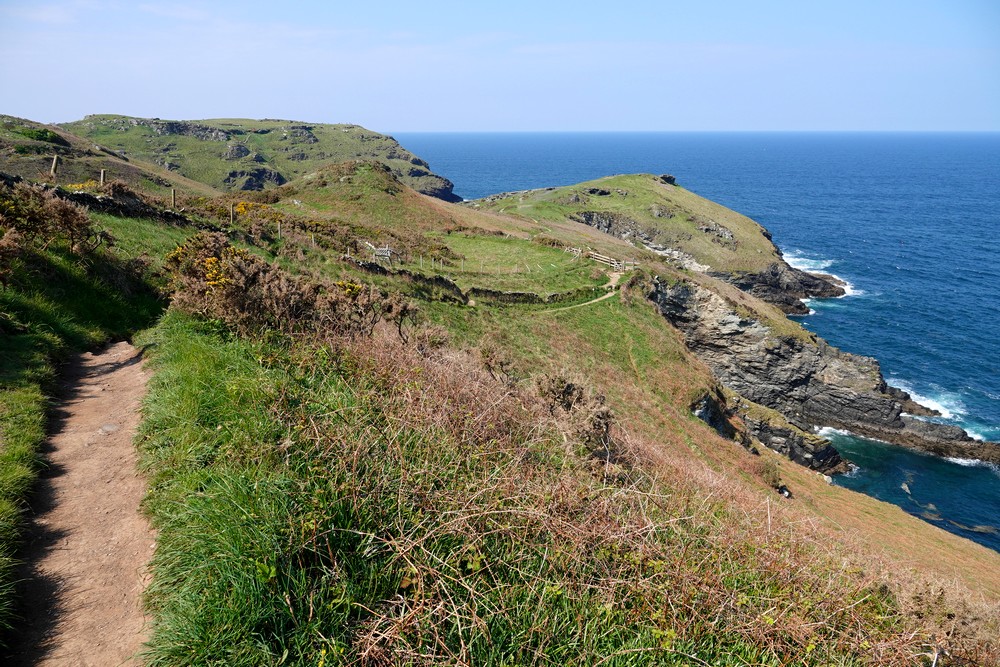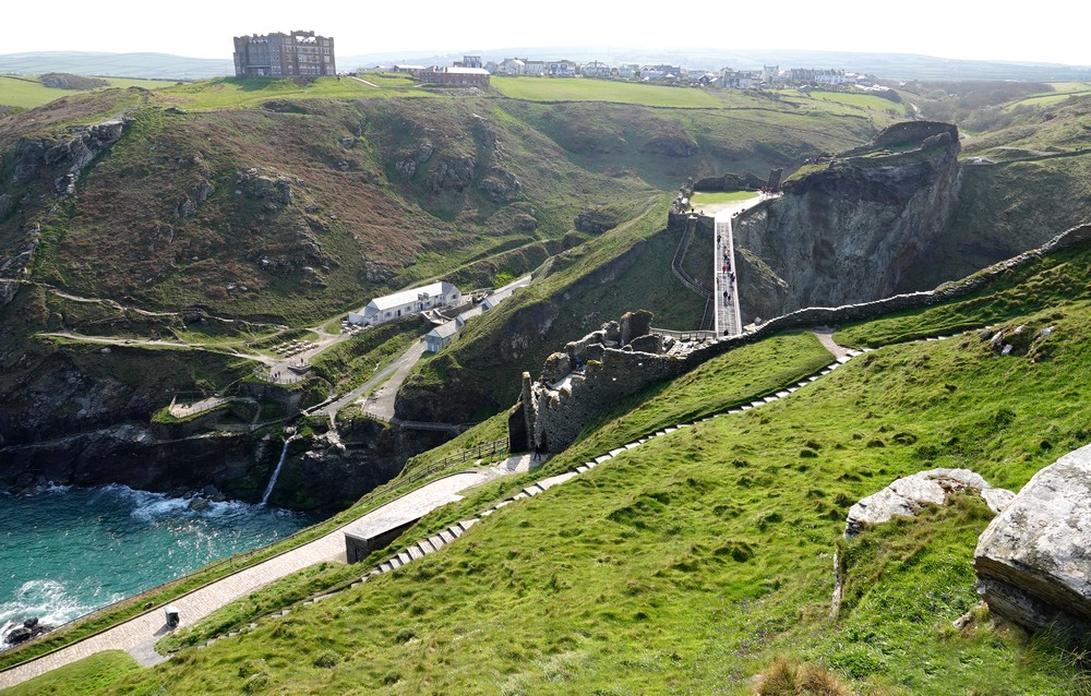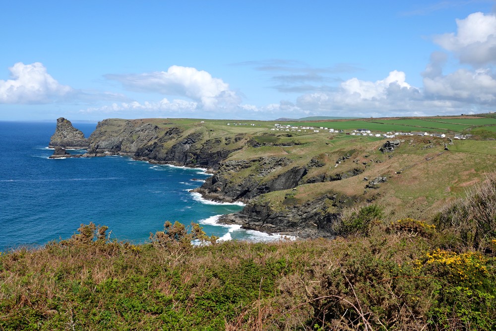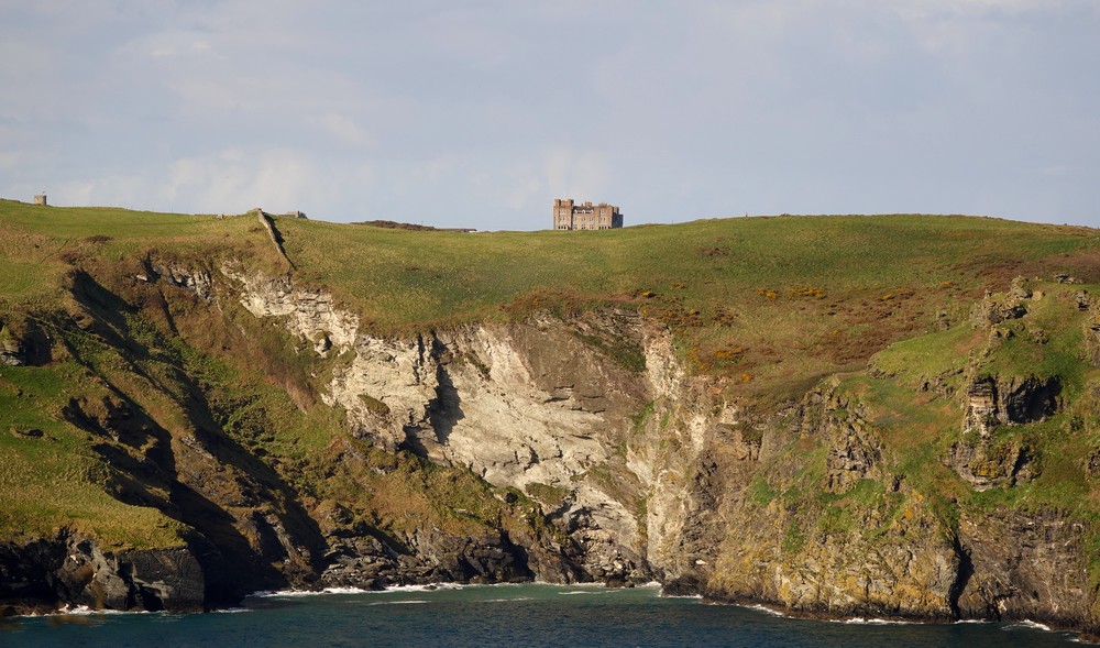 Au loin, en direction de Tintagel, on aperçoit le Camelot Hotel, construit en 1899 dans un style néo-normand, et dont les tours crénelées se voient à des kilomètres à la ronde !