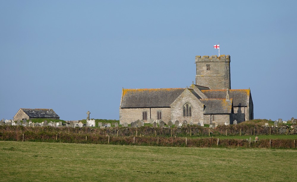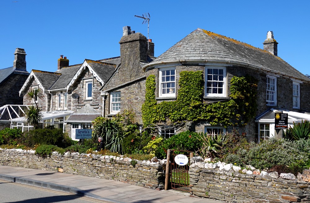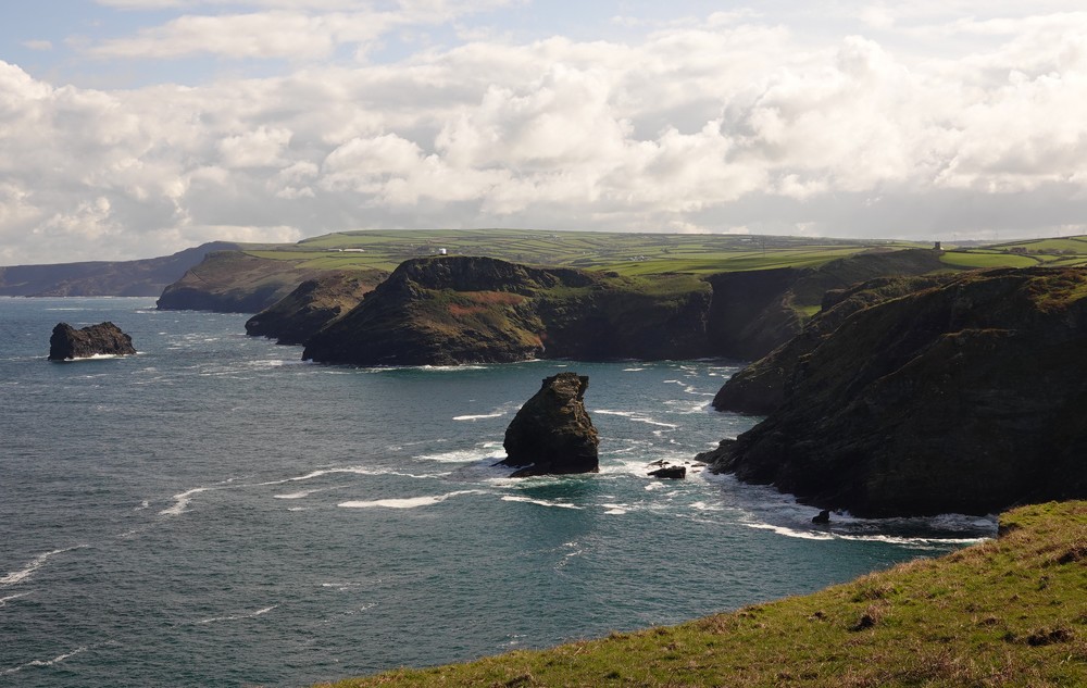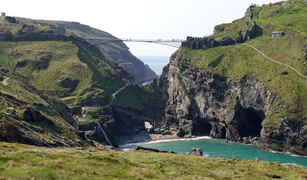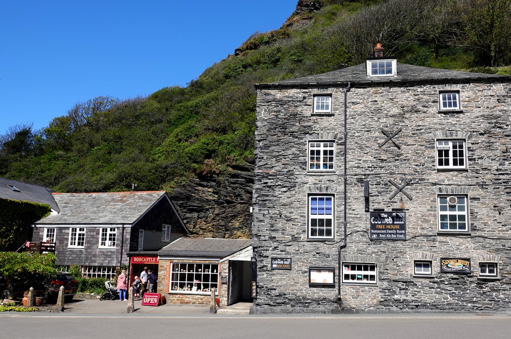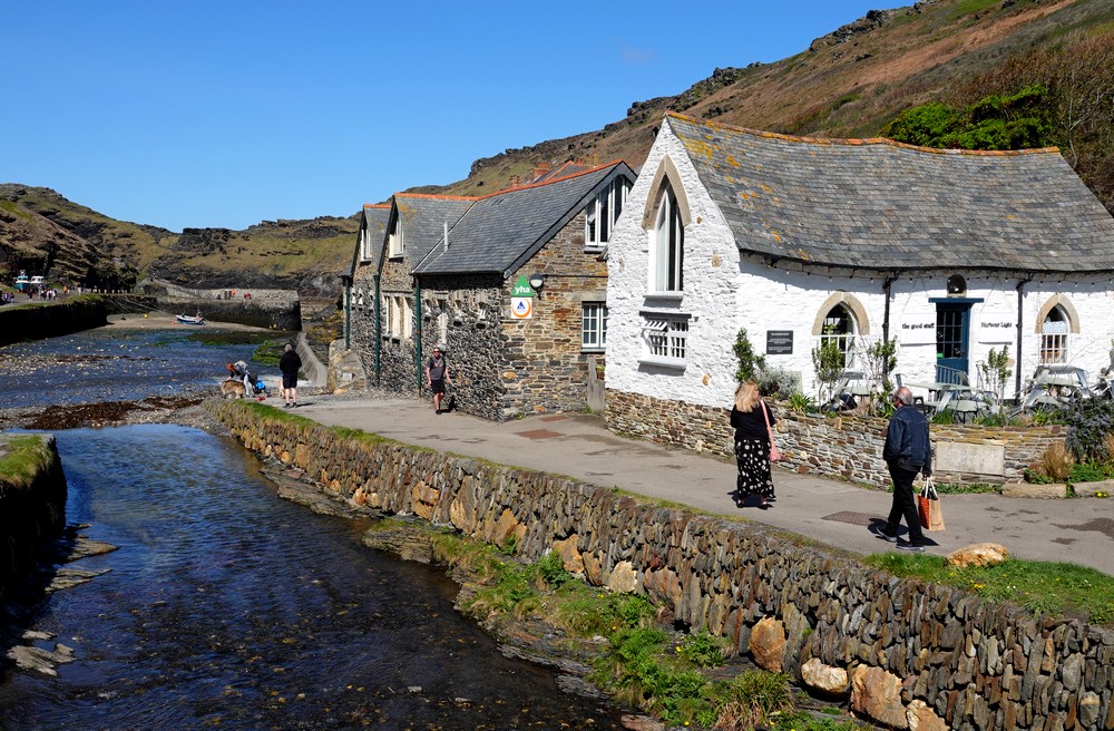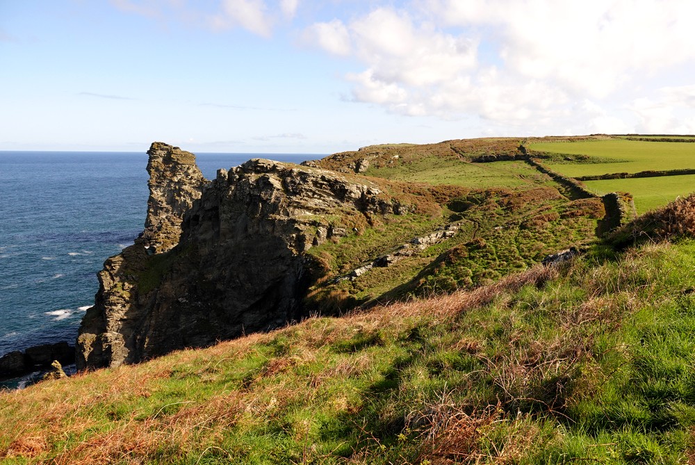 Au loin, en direction de Tintagel, on aperçoit le Camelot Hotel, construit en 1899 dans un style néo-normand, et dont les tours crénelées se voient à des kilomètres à la ronde !
