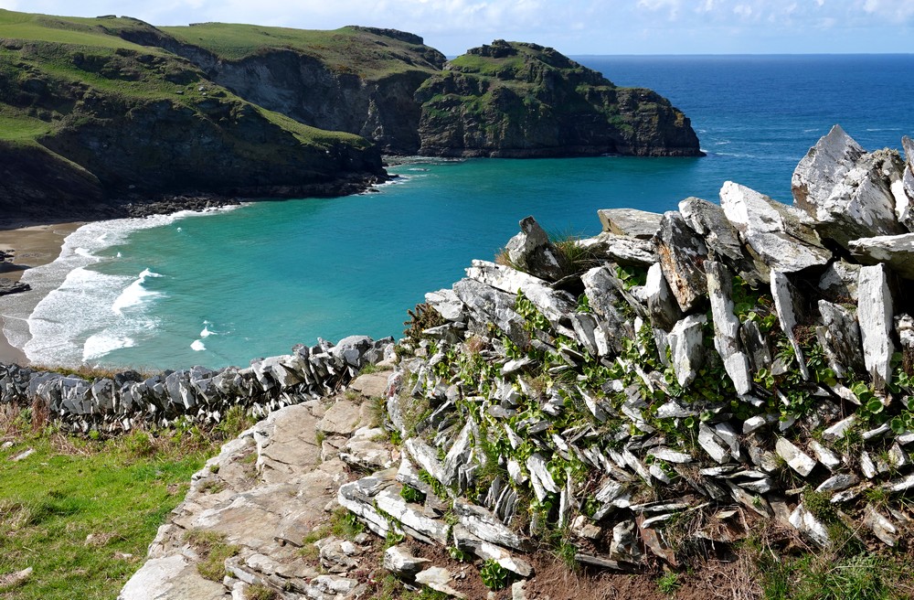 • Rando vers Bossiney Cove, 4km, 200m+. Attention, ne pas prendre le premier chemin qui y descend (très dangereux, avec corde à la fin), mais continuer de marcher en direction de Tintagel pour prendre le second chemin, beaucoup plus facile. Cette plage n’est accessible qu’à marée basse.