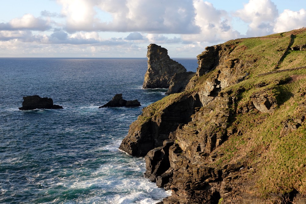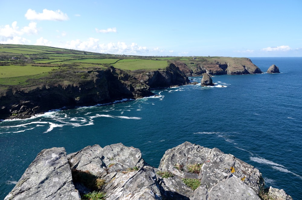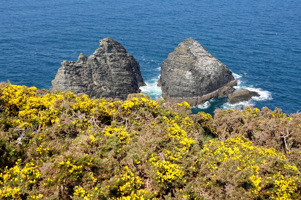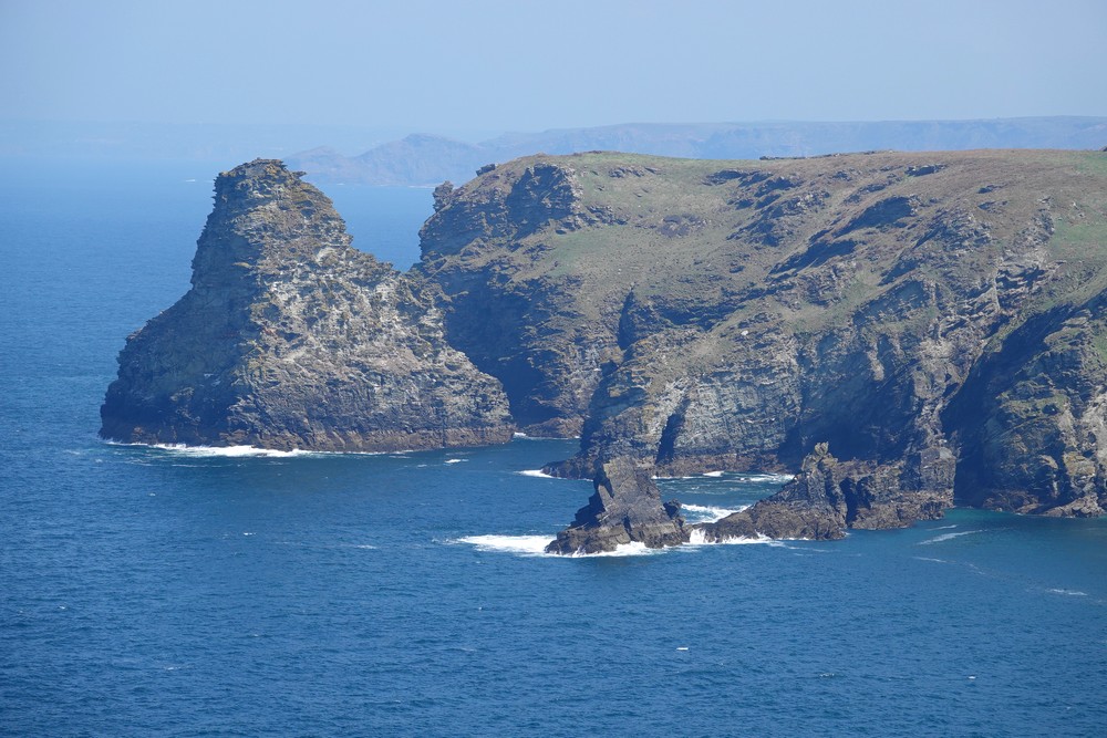 Un peu avant Bossiney Cove, au niveau des falaises de Willapark, nous bifurquons et nous dirigeons vers un point de vue d’où l’on domine The Sisters, deux énormes rochers qui abritent des colonies d’oiseaux marins.