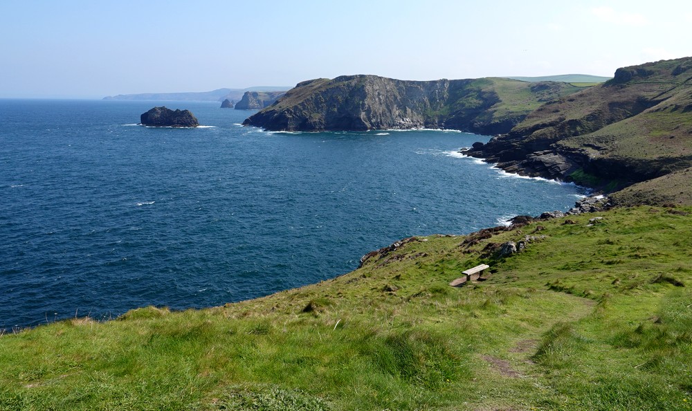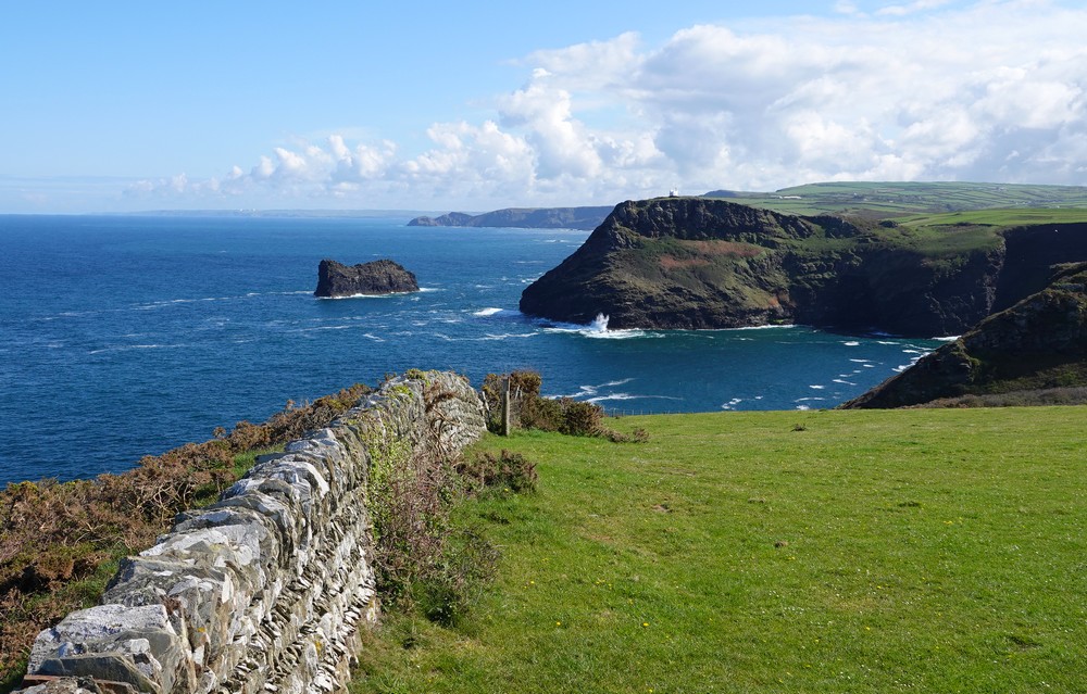 Au réveil, toujours un beau ciel bleu à peine voilé de quelques nuages ! A 9h, nous partons sur le sentier côtier en direction du nord. Objectif de la balade : le village de Boscatle, situé à environ 6km de marche du camping.