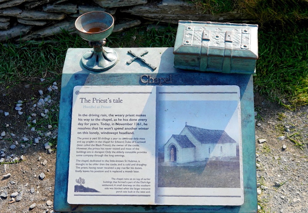 Après un dernier petit tour à la boutique, dédiée comme il se doit au Roi Arthur et aux Chevaliers de la Table Ronde, nous prenons le sentier côtier en direction du nord.