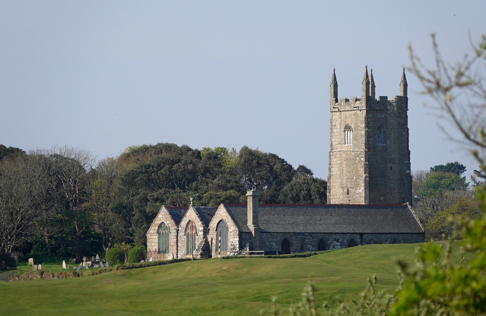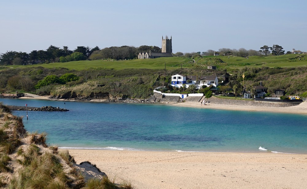 Par chance, on repère le tout petit panneau qui indique la voie à suivre – c’est-à-dire la national cycle road n°3 – et on l’emprunte jusqu’à la bifurcation de Saint Erth. Eh oui, la rivière Hayle formant un large bassin alluvionnaire, il faut le contourner pour rejoindre Saint Ives. A partir de là, les choses se corsent un peu : il n’y a aucune signalétique – il se peut aussi que l’on ait raté le panneau ! – et, pour moi, il est hors de question de rouler sur la A3074, bien trop passante à mon goût ! Alors on improvise en suivant de toutes petites routes, et on finit par se retrouver devant l’église Saint Uny que l’on voyait depuis la berge opposée.