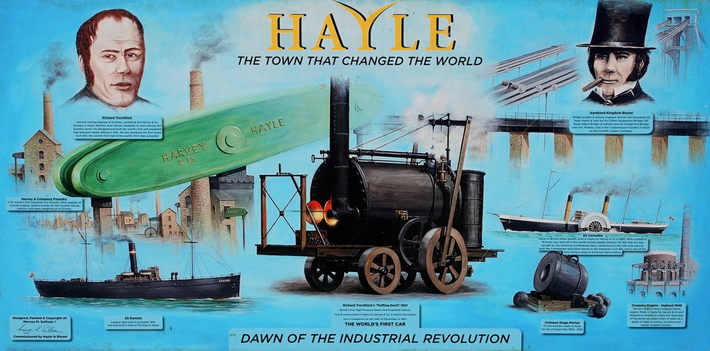 Sans difficulté, on retrouve le centre de Hayle, une petite ville qui s’est particulièrement distinguée durant la révolution industrielle. Ainsi, c’est ici qu’au XIXe siècle fut développée la première machine de forage de roche à vapeur au monde.