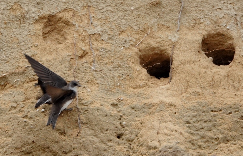 Au retour, Gérard abandonne le sentier côtier et rentre par la plage. A marée basse, c’est agréable et il n’y a pas foule ! En chemin, il observe les nids d’hirondelles installés en haut des falaises : ainsi protégés des prédateurs, les oiseaux sont tranquilles pour nicher !
