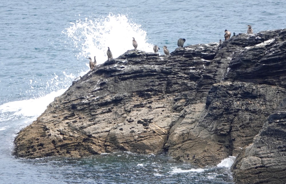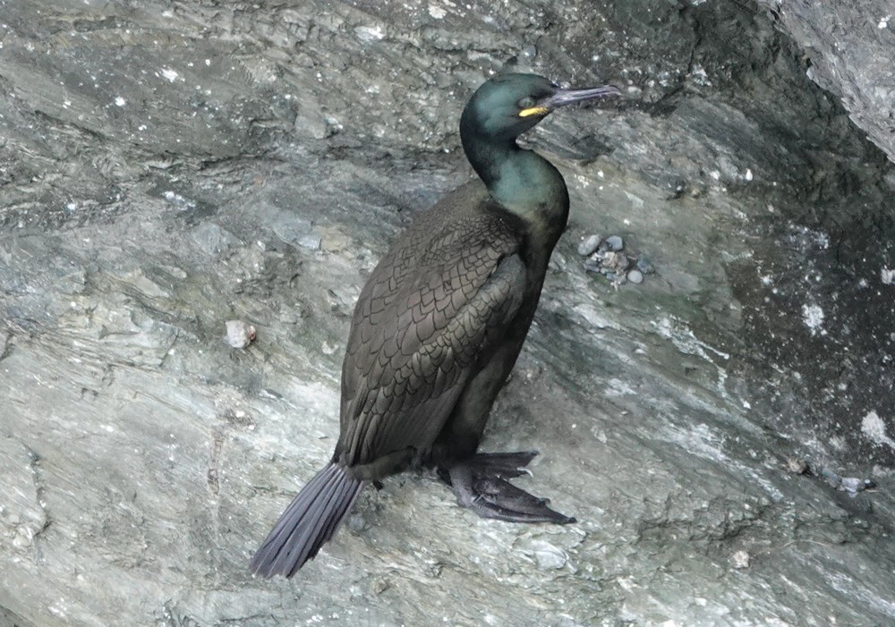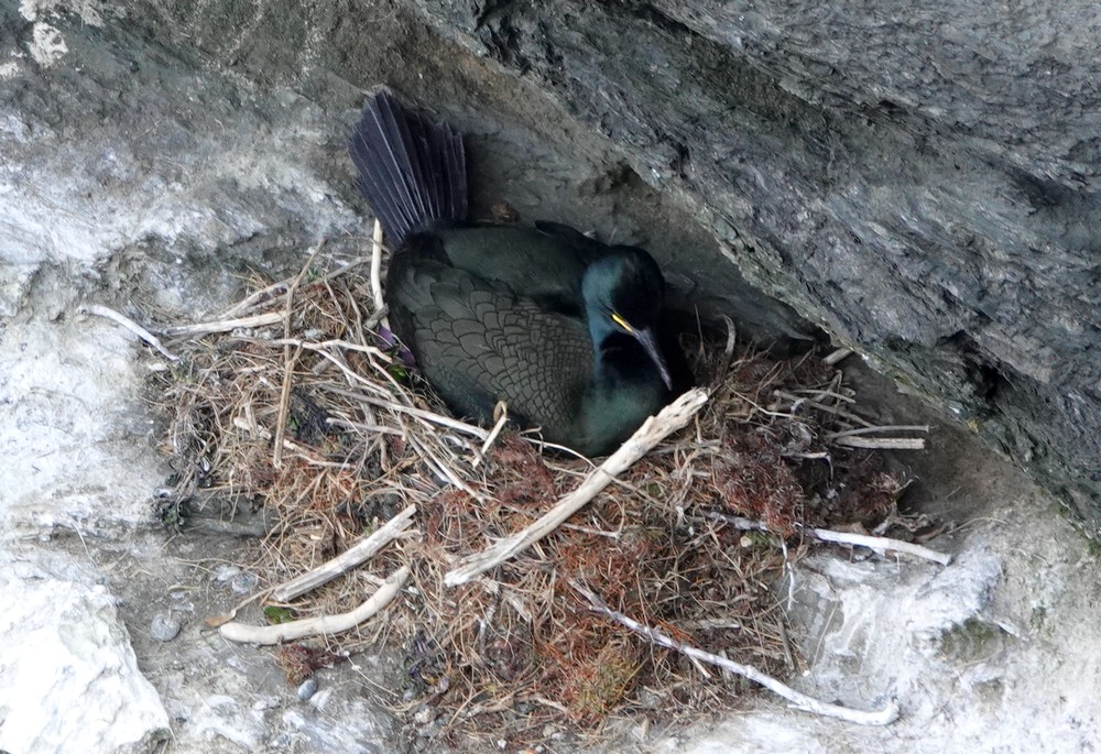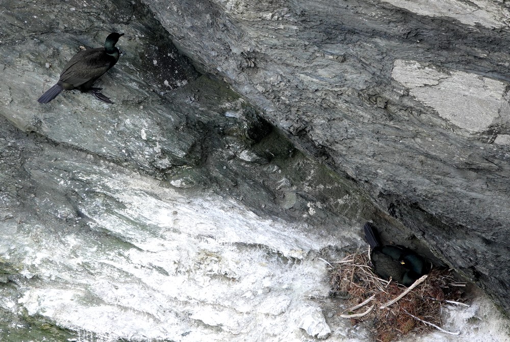 De loin, on repère les premiers cormorans : en effet, nous n’en avons pas vu depuis notre arrivée dans le pays ! En s’approchant plus près de la falaise, on en aperçoit aussi quelques-uns qui nichent à même le rocher…