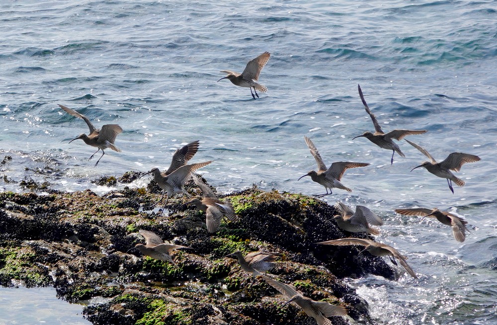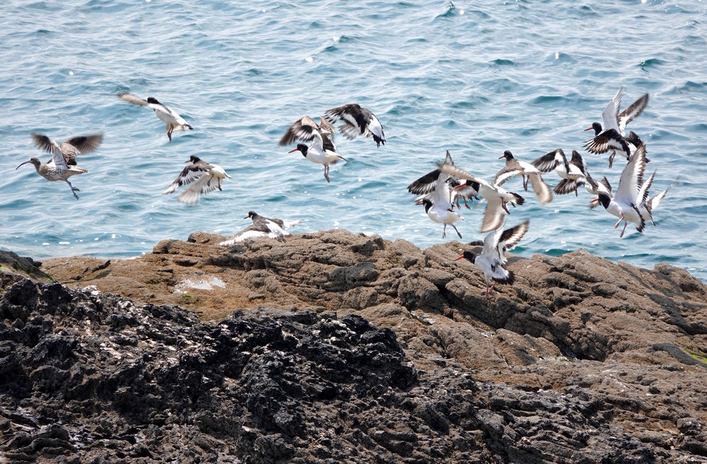 Au retour, nouvel arrêt face au phare pour regarder courlis cendrés et huitriers pie en plein vol et au sol !