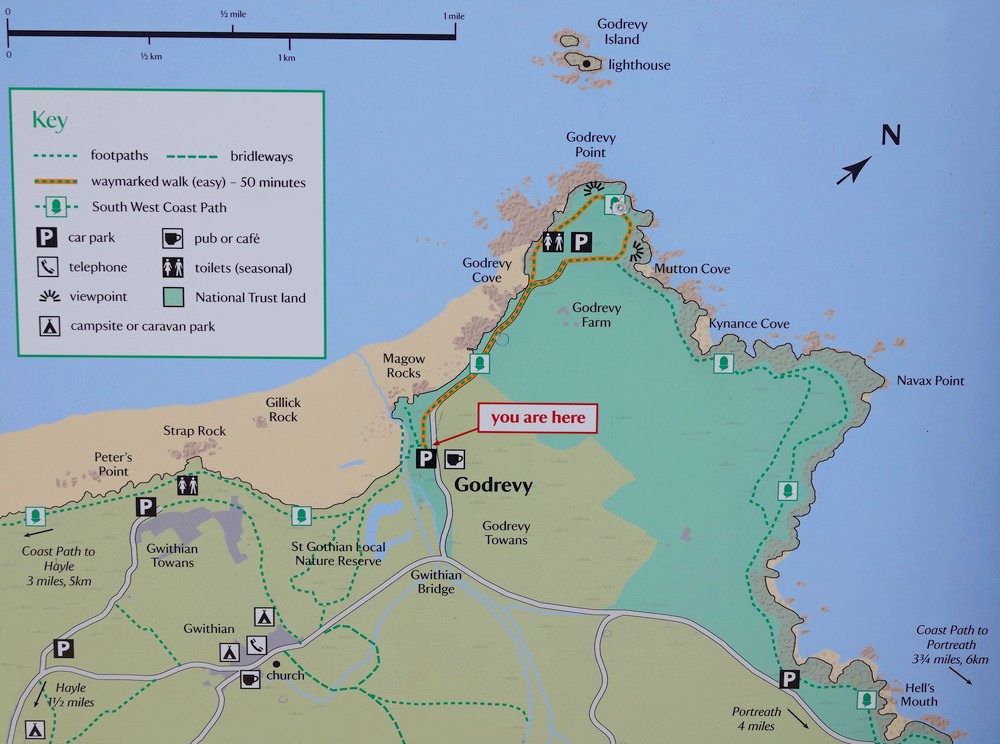 • Balade à pied à la pointe de Godrevy, observation des phoques et des cormorans. Un bel endroit pour pique-niquer, prévoir au moins 2h sur place. Accès à vélo, 12km AR, 150m+ jusqu’au parking de Godrevy.