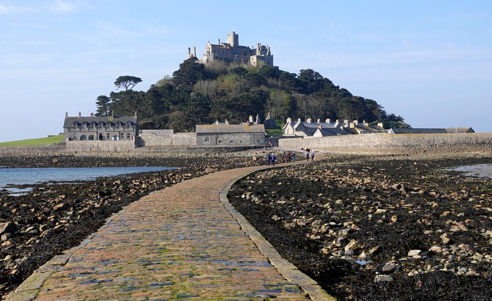 • Mount Saint Michael, 9h30-17h (en avril), accès à pied à marée basse / en bateau à marée haute (+2.50£), on conseille le forfait complet château + jardins, 24£ (résa préalable obligatoire). Prévoir entre 3h et 4h sur place. Accès depuis Hayle à vélo + poursuite jusqu’à Penzance, 23km, 110m+ / retour en train Penzance / Hayle, 2 liaisons par heure, 15mn, 4.30£.