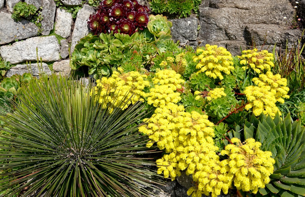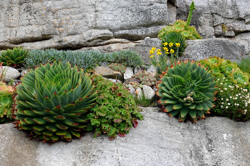 Après presque une heure de découverte, nous redescendons et nous nous dirigeons immédiatement vers ces beaux jardins : et hop, on remonte au gré des terrasses, toutes agrémentées de plantes parfois surprenantes, originaires des côtes méditerranéennes, du Mexique, des îles Canaries et d’Afrique du Sud. Cette végétation de rocaille subtropicale, plantée à partir de 1780, est vraiment superbe !