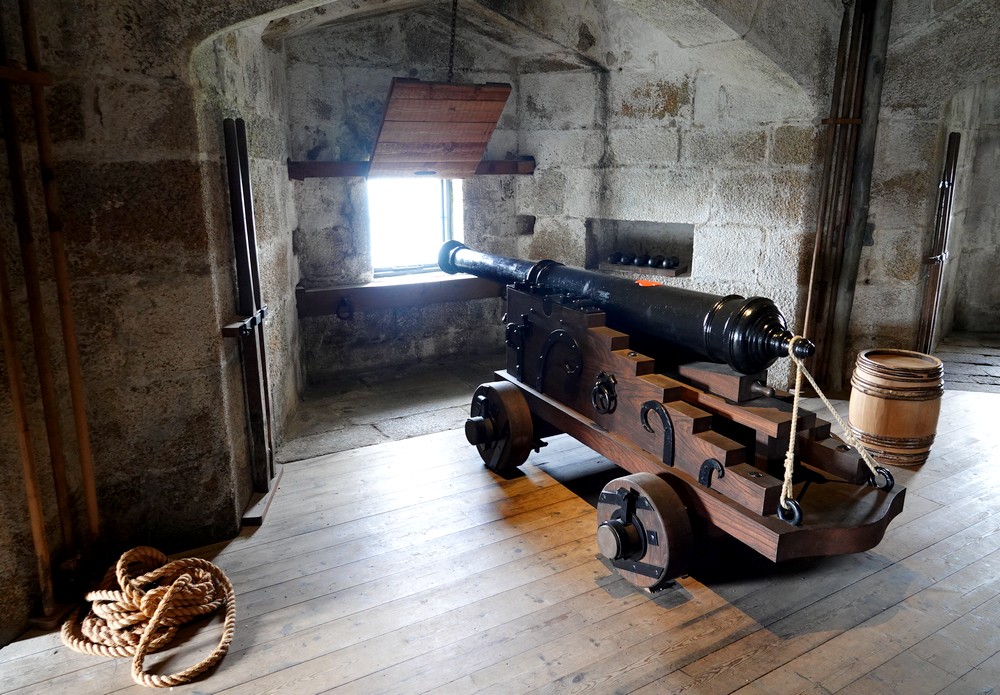 Nous patientons le temps que les gardiens ouvrent les portes à 9h15, puis nous filons directement au sommet de l’ile où se situe l’entrée du château, 60m au-dessus des flots. Comme nous le fait remarquer une employée, nous sommes les premiers visiteurs de la journée à en franchir le pas : pour ceux qui nous connaissent, cela ne les étonnera pas car ils savent que nous apprécions découvrir les sites seuls ou presque !