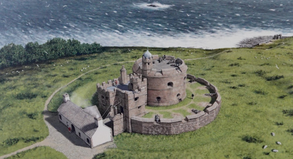 Le site arbore une allure militaire prononcée, avec son donjon circulaire et ses canons. Son emplacement stratégique lui valut également d’être une place forte de la défense britannique pendant les deux guerres mondiales, avant d’être démilitarisé en 1954.