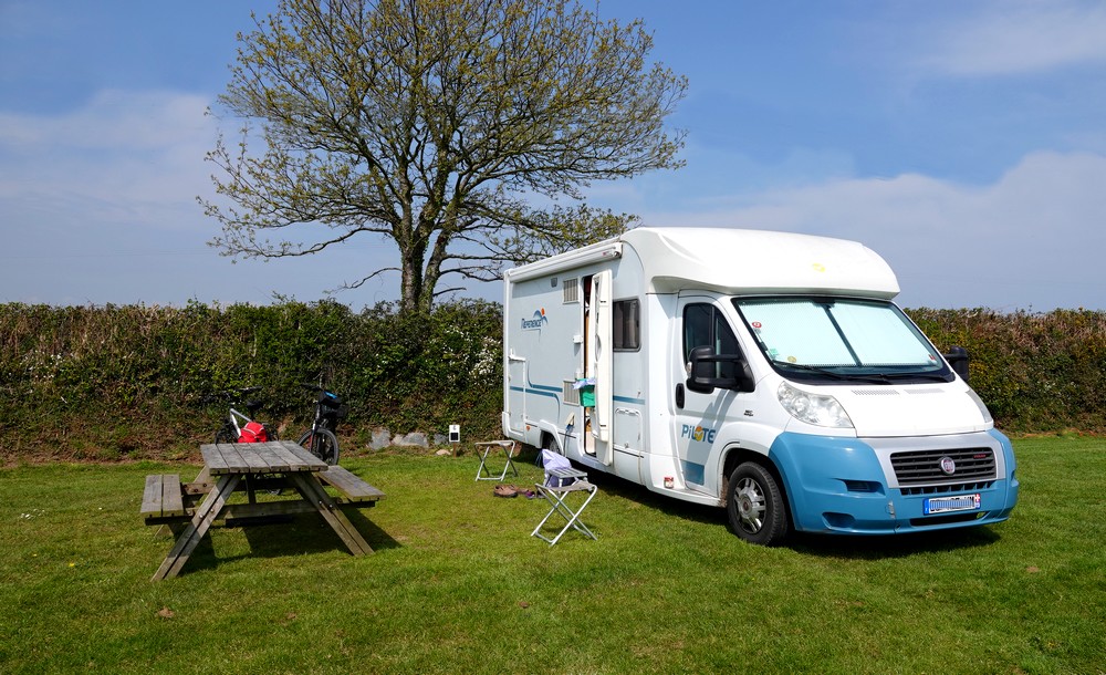 Encore quelques centaines de mètres, et nous parvenons à notre nouveau point de chute pour les cinq nuits à venir, le camping Higher Kestle Farm qui, comme son nom l’indique jouxte une ferme. On apprécie immédiatement cet endroit très champêtre…