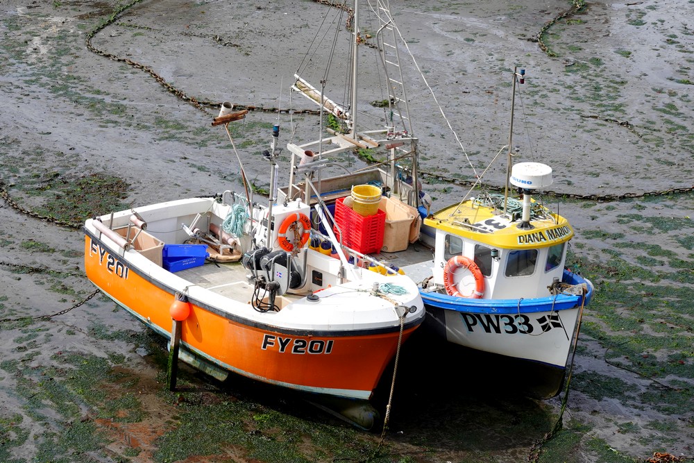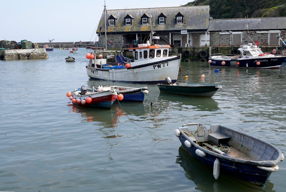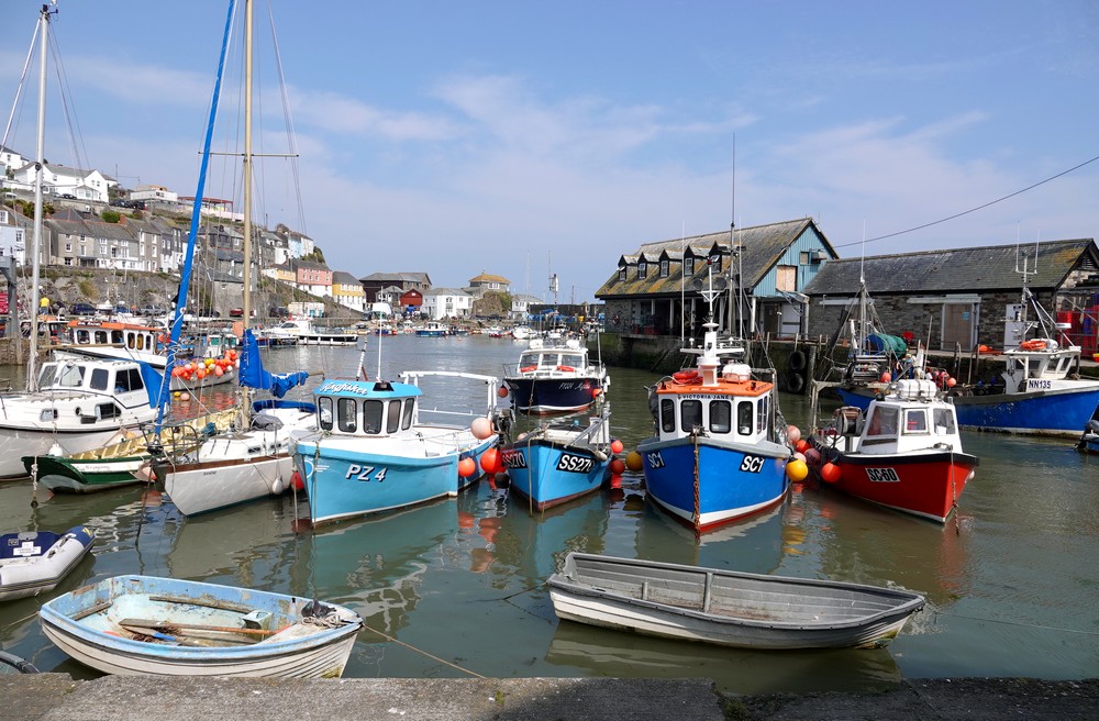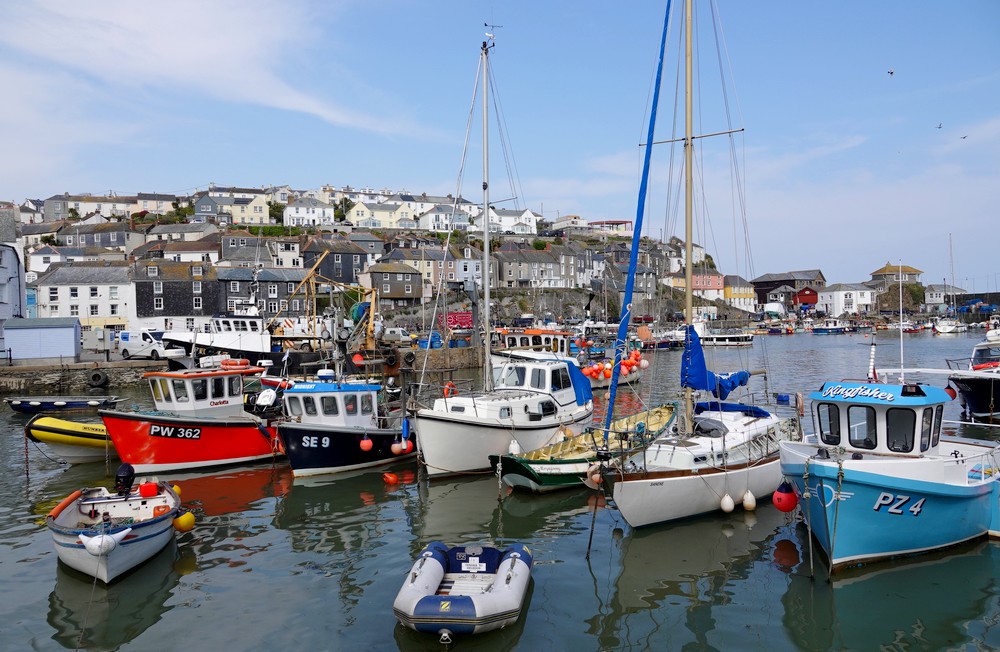 Après le déjeuner, pendant que je m’occupe d’actualiser le blog, Gérard part à vélo repérer les environs. Il commence par descendre à Mevagissey – et hop, une petite pente à 25%, une de plus, mais dans ce sens, elle ne pose pas problème ! Ce petit port de pêche – mais tout de même le second plus important des Cornouailles – possède un double bassin assez surprenant.