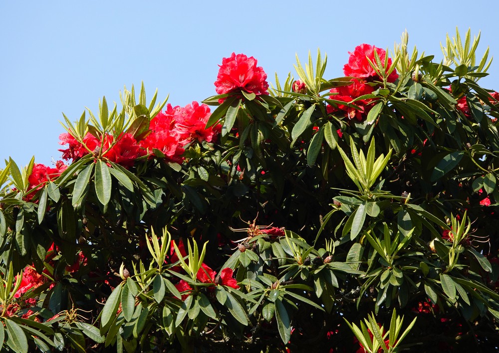 Nous commençons par visiter la partie « fleurie » du parc et première surprise : les rhododendrons qui sont tout simplement colossaux ! Un panneau nous explique qu’en effet, ces plantes sont originaires du Sikkim en Inde, et elles n’ont donc rien à voir avec celles que l’on connait en Europe.